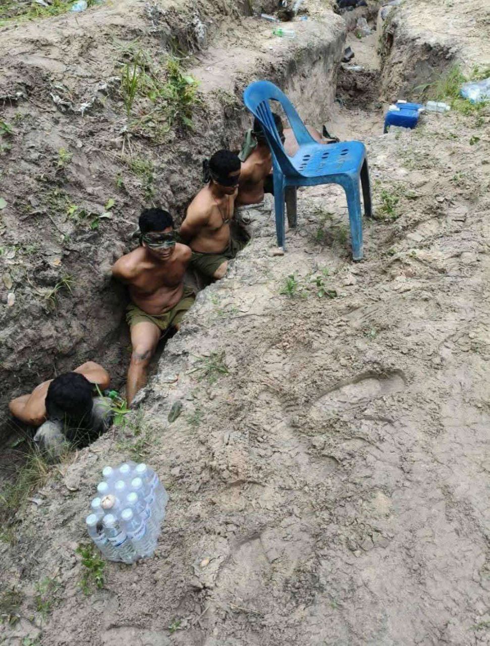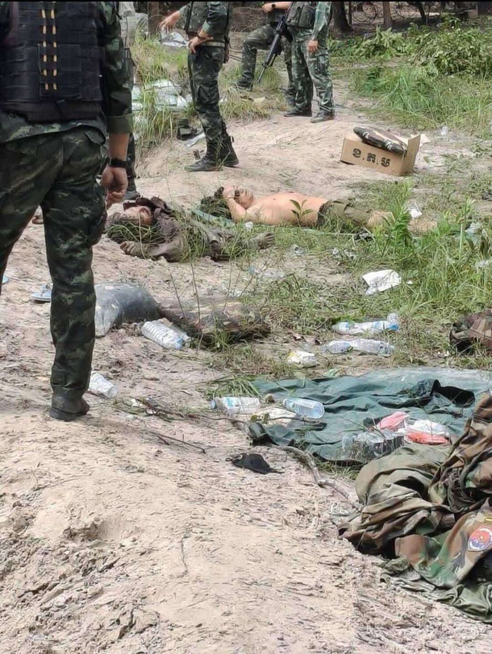 However, the Thailand's invading forces used a deceptive trick by waving their hands, calling the Cambodian soldiers to return for negotiations. Unaware of the trap, the Cambodian soldiers went up to meet them. Meanwhile, Thailand's invading enemy soldiers had already hidden troops in the forest, lying in ambush, and suddenly emerged to raise up the guns and capture the Cambodian soldiers outright. one Cambodian soldier wounded by a Thai soldier's blasted the bomb, then pretended to be dead to deceive the enemy. Luckily, he escaped to find a safe zone, while another soldier also managed to escape safely as well.