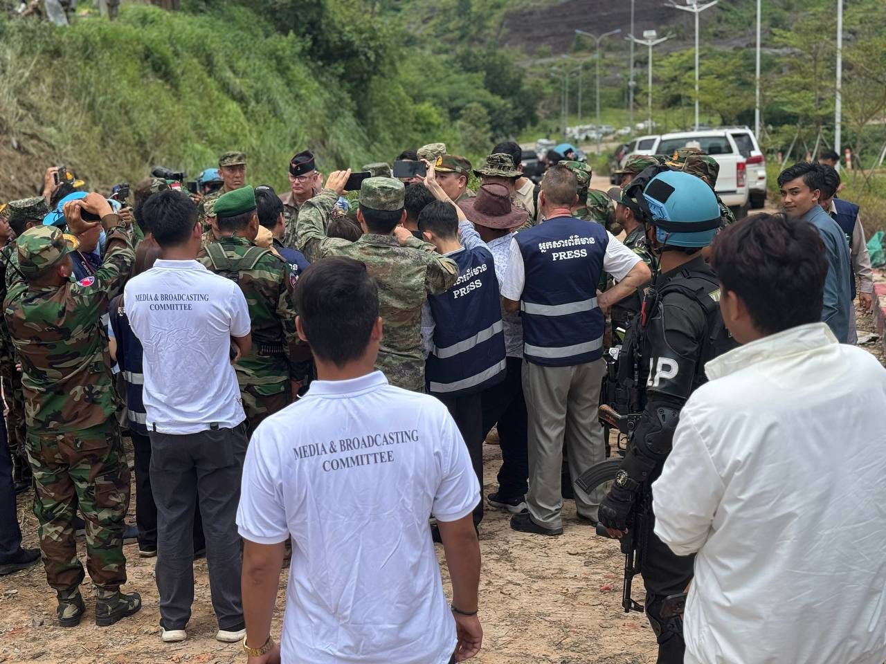 According to Major General Chan Sopheaktra, Commander of the Preah Vihear Operational Military Area, who confirmed the Thai invading military's shameful aggression to 13 foreign military attaches who came to inspect the border on July 30, 2025 that after the ceasefire order took effect, the Cambodian military implemented the directive from leadership – specifically, not to open fire and to maintain their positions in occupied areas. However, on the morning of July 29, 2025, a group of approximately 25 to 30 Thai soldiers, accompanied by one armored vehicle, advanced into the Cambodian military's position. This prompted forced Cambodian troop's to request engagement orders. Nevertheless, the leaders maintained the principle of not allowing firing. Consequently, the Cambodian military had no choice and withdrawals of fearing armed eruption.