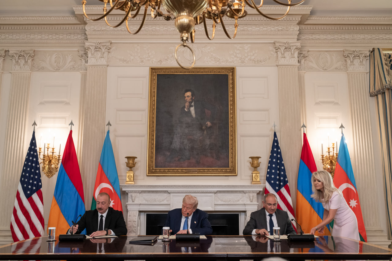 រដ្ឋធានីវ៉ាស៊ីនតោន៖ អាហ្សែបៃហ្សង់ និងអាមេនី បានចុះហត្ថលេខាលើកិច្ចព្រមព្រៀងសន្តិភាព ដែលសម្របសម្រួលដោយសហរដ្ឋអាម៉េរិក កាលពីថ្ងៃទី៨សីហា ក្នុងអំឡុងពេលកិច្ចប្រជុំជាមួយប្រធានាធិបតីអាម៉េរិក លោក ដូណាល់ ត្រាំ ដែលនឹងជំរុញទំនាក់ទំនងសេដ្ឋកិច្ចទ្វេភាគី បន្ទាប់ពីជម្លោះជាច្រើនទសវត្សរ៍ និងជំរុញប្រទេសទាំង២ ឆ្ពោះទៅរកប្រក្រតីភាពពេញលេញនៃទំនាក់ទំនងរបស់ពួកគេ។