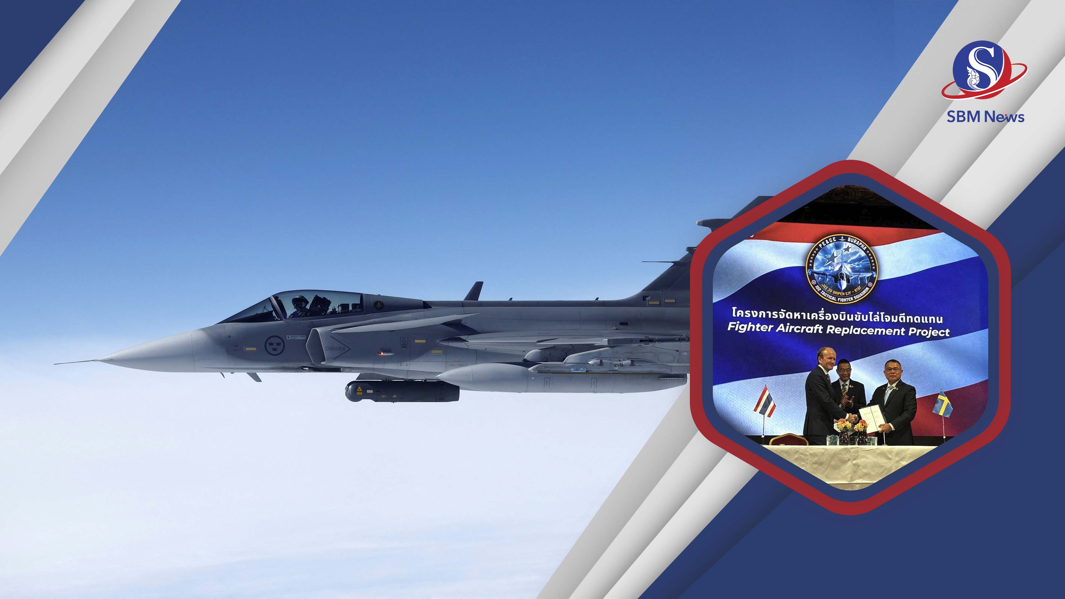 រដ្ឋធានីស្តុកខុល៖ ប្រទេសថៃកាលពីថ្ងៃចន្ទទី២៥សីហា បានចុះហត្ថលេខាលើកិច្ចសន្យាជាមួយប្រទេសស៊ុយអែត ទិញយន្តហោះចម្បាំង Gripen E/F ចំនួន៤គ្រឿងនៅក្នុងដំណាក់កាលទី១ ដែលមានតម្លៃ១៩,៥ពាន់លានបាត ឬស្មើនឹងប្រមាណជាង៥៥០ លានដុល្លារ។ កិច្ចសន្យានេះ ត្រូវបានចុះហត្ថលេខាដោយអគ្គមេបញ្ជាការទ័ពអាកាសថៃ (RTAF) លោក ភុនភក្តី ផាត់នៈកុល (พันธ์ภักดี พัฒนกุล) និងលោក មីកែល ហ្គ្រេនហូល (Mikael Granholm) អគ្គនាយករដ្ឋបាលសម្ភារការពារជាតិស៊ុយអែត (FMV) និងដោយមានរដ្ឋមន្ត្រីក្រសួងការពារជាតិស៊ុយអែត លោក ប៉ាល់ ចនសុន (Pal Jonson) ជាសាក្សីផងដែរ...។