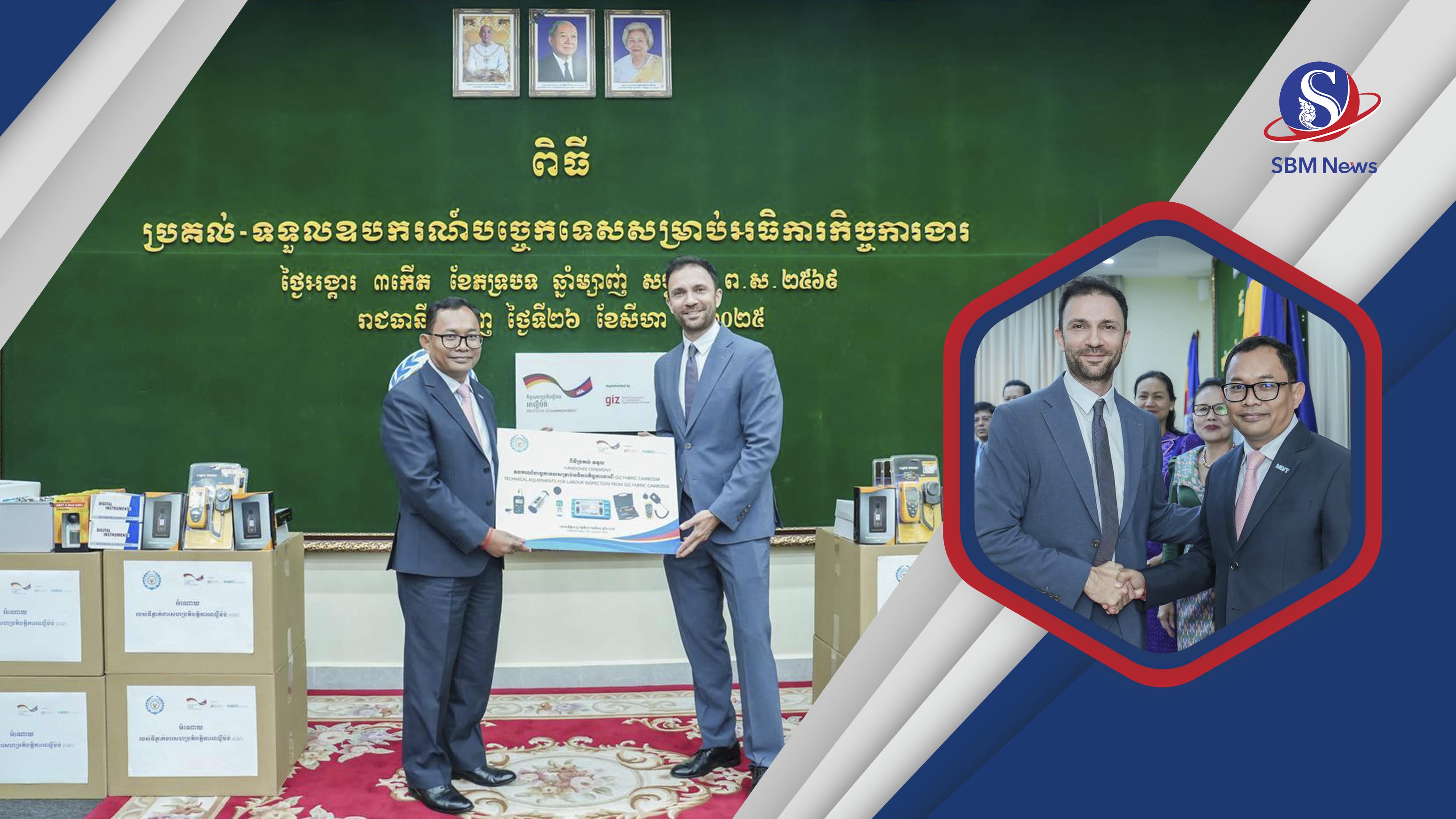 រាជធានីភ្នំពេញ៖ ទីភ្នាក់ងារអាល្លឺម៉ង់ សម្រាប់កិច្ចសហប្រតិបត្តិការបច្ចេកទេស(GIZ) តាមរយៈគម្រោង GIZ FABRIC Cambodia បានប្រគល់ឧបករណ៍បច្ចេកទេស ៤៥គ្រឿងដល់ ក្រសួងការងារ និងបណ្តុះបណ្តាលវិជ្ជាជីវៈទុកឱ្យមន្ត្រីជំនាញអធិការកិច្ច ប្រើប្រាស់ពេលចុះធ្វើអធិការកិច្ចពាក់ព័ន្ធនឹងអនុលោមភាព នៃលក្ខខណ្ឌសុវត្ថិភាព និងសុខភាពការងារ(OSH) នៅតាមសហគ្រាស និងគ្រឹះស្ថាននានា…។