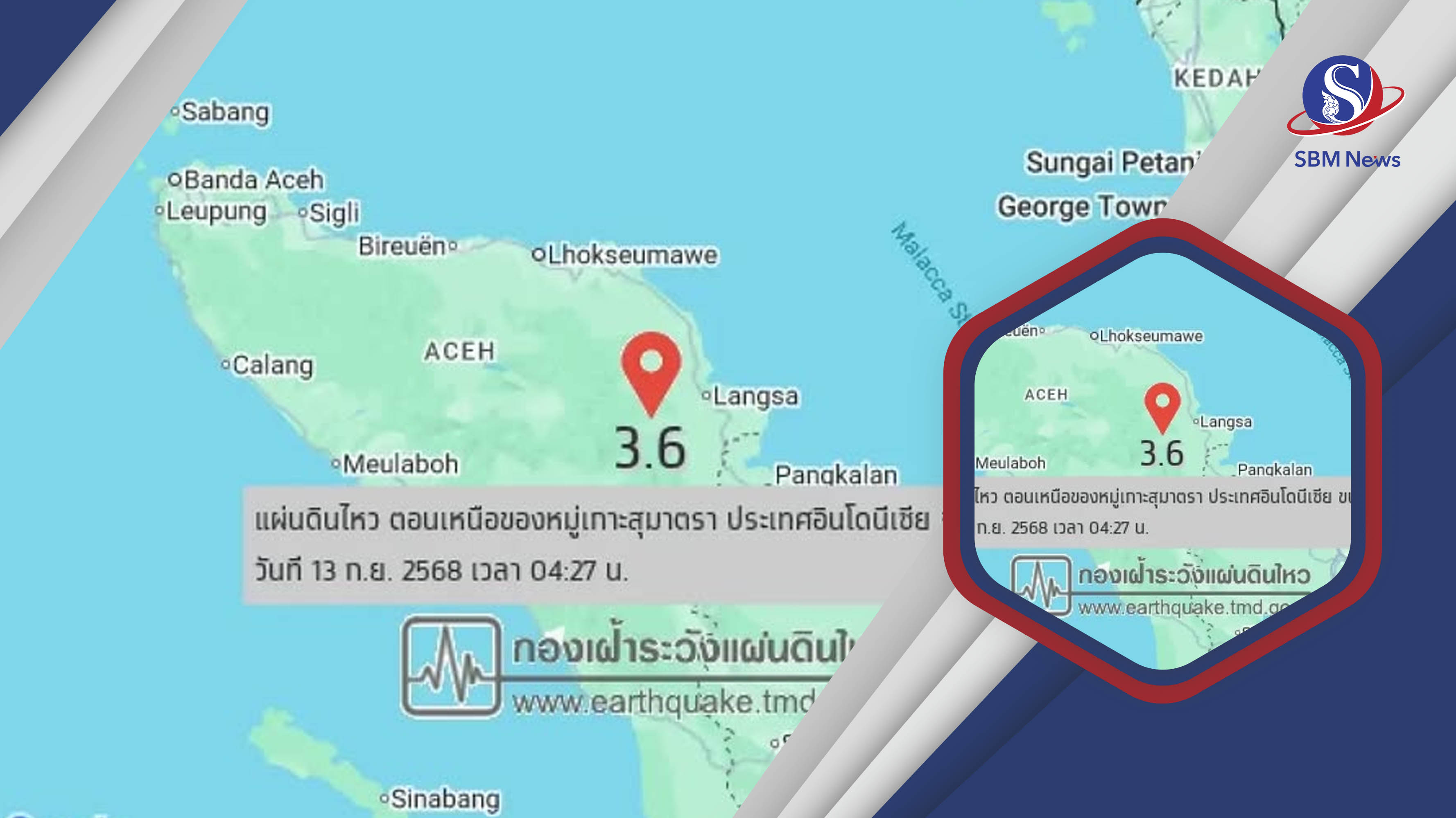 នៅព្រឹកព្រលឹមថ្ងៃទី១៣ ខែកញ្ញា នាយកដ្ឋានអង្កេតគ្រោះរញ្ជួយដីនៃនាយកដ្ឋានឧតុនិយមថៃបានរកឃើញគ្រោះរញ្ជួយដីកម្រិត ៣,៦រ៉ិចទ័របានវាយប្រហារនៅប្រទេសឥណ្ឌូណេស៊ី។ គ្រោះរញ្ជួយដីនេះបានវាយប្រហារក្នុងជម្រៅ ១០គីឡូម៉ែត្រ នៅចំកណ្តាលភាគខាងជើងនៃកោះស៊ូម៉ាត្រា ពោលគឺចម្ងាយប្រហែល ៣៦៧គីឡូម៉ែត្រ ភាគនិរតីនៃស្រុកមឿង ខេត្តសាទុន។ តំបន់ភាគខាងជើងប្រទេសថៃបានរងនូវការញ័ររញ្ជួយតិចតួច ដោយលើកទី១ មានកម្លាំង ១,៥រ៉ិចទ័រ នៅជម្រៅ ៣គីឡូម៉ែត្រ បានកើតឡើងនៅខេត្តម៉ែហុងសុន(Mae Hong Son)។ លើកទី២ នៅកម្រិត ២,៤រ៉ិចទ័រ មានជម្រៅ ១០គីឡូម៉ែត្រ បានកើតឡើងនៅក្នុងប្រទេសមីយ៉ាន់ម៉ា។ បើតាមសេចក្តីរាយការណ៍ មិនមានការខូចខាតទ្រព្យសម្បត្តិ ឬអ្នករងរបួសនៅក្នុងប្រទេសថៃទេ៕