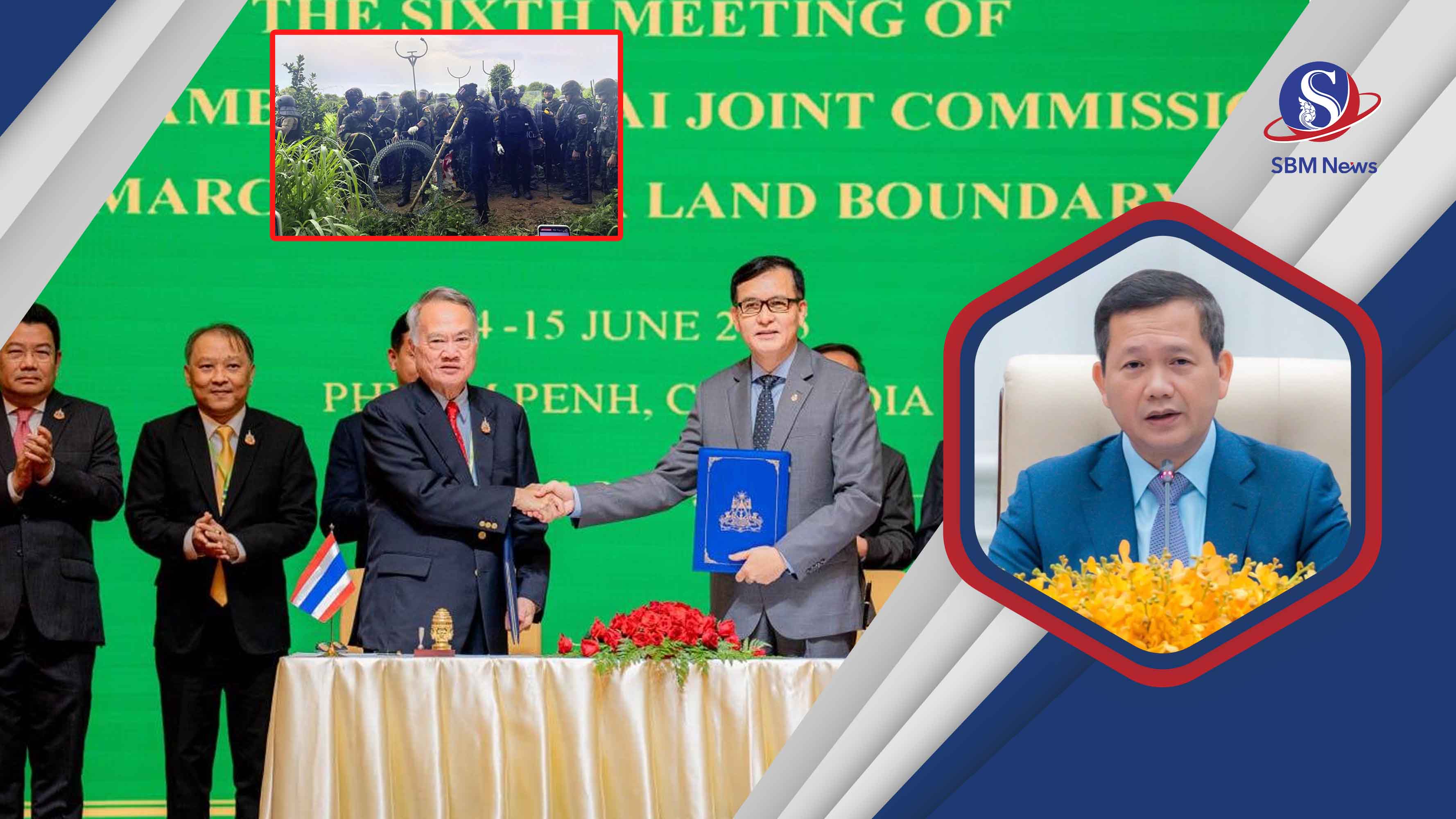 សម្ដេចធិបតី ហ៊ុន ម៉ាណែត នាយករដ្ឋមន្រ្តីនៃកម្ពុជា នារសៀលថ្ងៃទី៨តុលាបានមានប្រសាសន៍ថា កំណត់ហេតុព្រមព្រៀងកិច្ចប្រជុំពិសេស លើកទី១ នៃគណៈកម្មាធិការព្រំដែនទូទៅកម្ពុជា-ថៃ នៅខេត្តកោះកុង កាលពីថ្ងៃទី១០កញ្ញា ចុះហត្ថលេខាដោយរដ្ឋមន្ត្រីការពារជាតិកម្ពុជា និងរដ្ឋមន្ត្រីស្តីទីនៃក្រសួងការពារជាតិថៃ បានបញ្ជាក់ច្បាស់ថា បញ្ហាទាក់ទងនឹងការគ្រប់គ្រងព្រំដែន ជាពិសេស ពាក់ព័ន្ធនឹងឧបទ្ទវហេតុនៅក្នុងតំបន់ភូមិជោគជ័យ ឃុំអូរបីជាន់ ស្រុកអូរជ្រៅ ខេត្តបន្ទាយមានជ័យ នៃប្រទេសកម្ពុជា ទល់មុខភូមិណងចាន់ ស្រុកខូកស៊ូង ខេត្តស្រះកែវ ប្រទេសថៃ ភាគីទាំងពីរបានទទួលស្គាល់ថា គណៈកម្មការចម្រុះព្រំដែន (JBC) ជាយន្តការដោះស្រាយបញ្ហាដែលទាក់ទងនឹងការវាស់វែងរួម និងខ័ណ្ឌសីមាព្រំដែន។