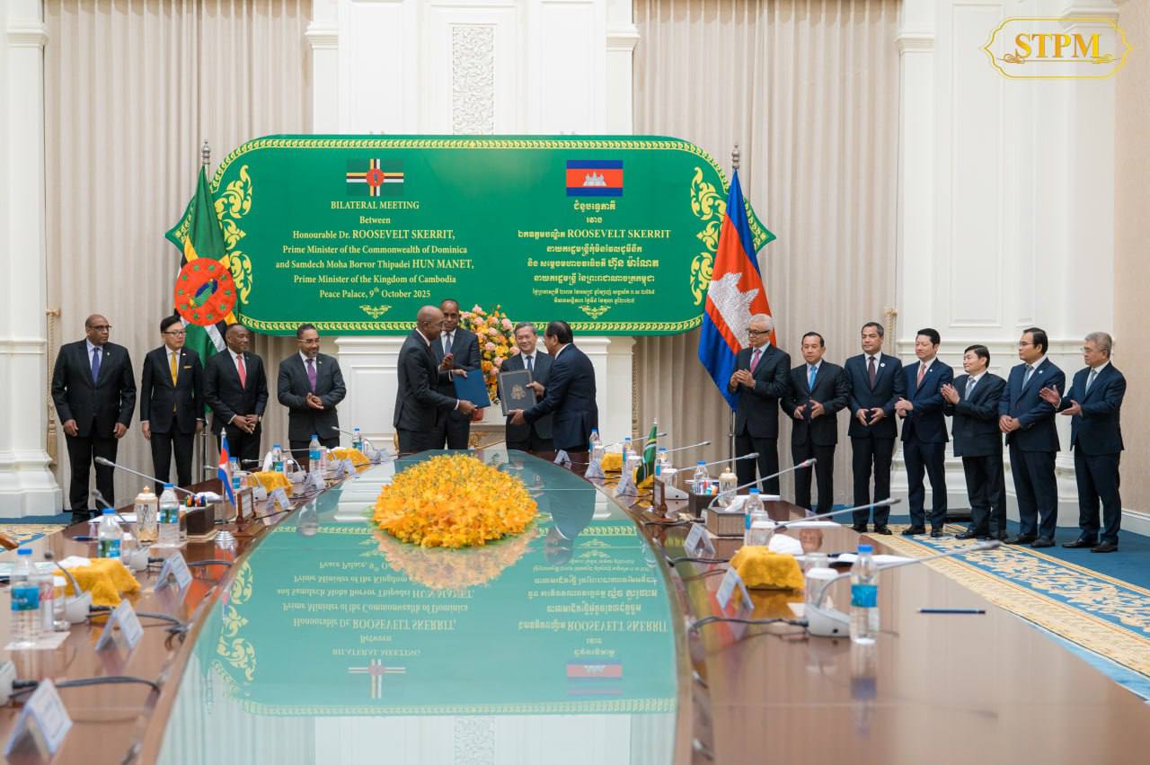 រាជធានីភ្នំពេញ៖ ប្រមុខរាជរដ្ឋាភិបាលកម្ពុជា និងកុំមិនវែលដូមីនីក តាមរយៈជំនួបទ្វេភាគីនៅព្រឹកថ្ងៃទី៩ ខែតុលា ឆ្នាំ២០២៥ នៅរាជធានីភ្នំពេញ បានឯកភាពគ្នាពង្រឹង និងពង្រីកទំនាក់ទំនងទ្វេភាគីឱ្យកាន់តែរីកចម្រើន ខណៈទំនាក់ទំនងការទូតរវាងប្រទេសទាំងពីរឈានដល់ខួបលើកទី១៥...។