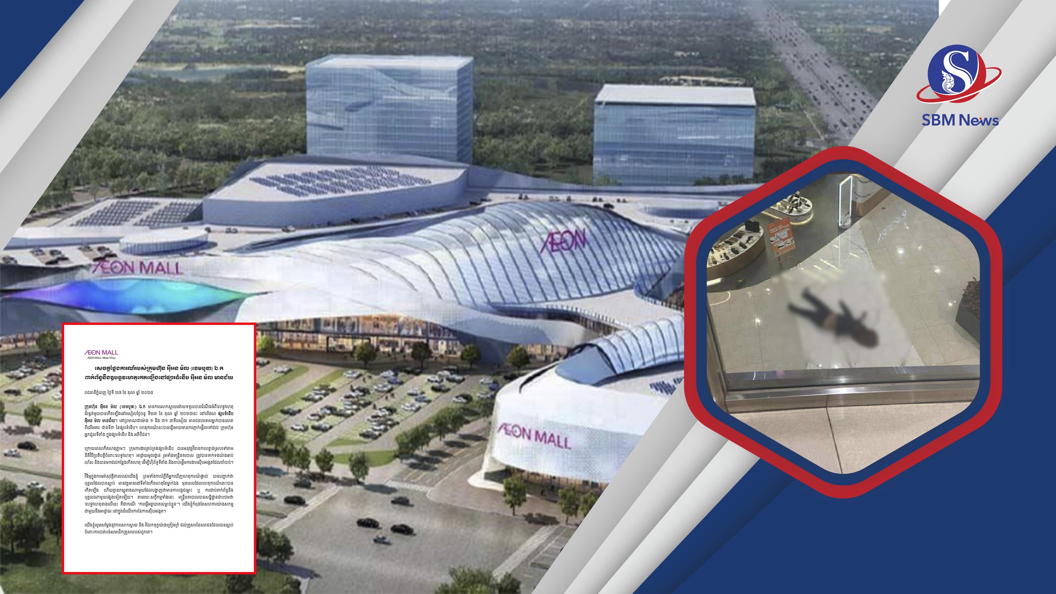 រាជធានីភ្នំពេញ៖ ក្រោយកើតមានករណីមនុស្សធ្លាក់ពីលើផ្សារទំនើបអ៊ីអន៣ ស្ថិតក្នុងសង្កាត់ចាក់អង្រែក្រោម ខណ្ឌមានជ័យ នៅថ្ងៃទី២៧តុលា ឆ្នាំ២០២៥ ពេលនេះ ក្រុមហ៊ុន ម៉ីអន ម៉ល (ខេមបូឌា) បានចេញមុខអះអាងថា ជាអំពើអត្តឃាត លោតសម្លាប់ខ្លួន...។