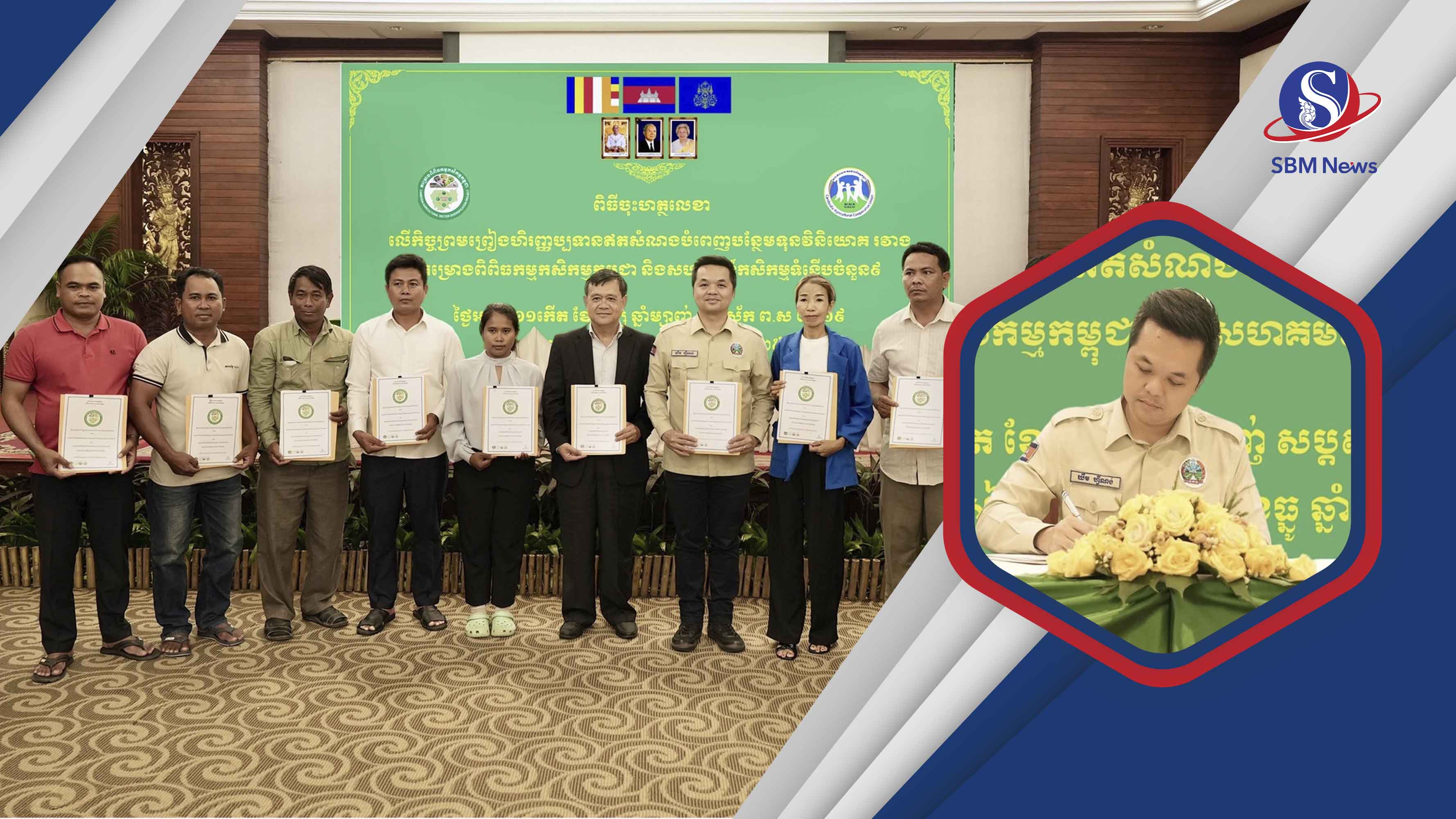 ក្រសួងកសិកម្ម បានឱ្យដឹងថា កិច្ចព្រមព្រៀងផ្ដល់កម្ចីឥណទានមានការប្រាក់ទាបជាង១២លានដុល្លារ និងជិត១លានដុល្លារទៀត ជាជំនួយឥតសំណង ត្រូវបានចុះហត្ថលេខាដោយលោក ឃឹម ហ្វីណង់ អនុរដ្ឋលេខាធិការក្រសួងកសិកម្ម និងជានាយកគម្រោងពិពិធកម្មកសិកម្មកម្ពុជា ជាមួយតំណាងសហគមន៍កសិកម្មទំនើបទាំង៩។ ដោយសារ ភាពស្រពេចស្រពិលនៃបញ្ហាសង្គ្រាមនៅតាមបណ្តាខេត្តជាប់ព្រំដែន កម្មវិធីដ៏សំខាន់នេះ ត្រូវបានធ្វើឡើងរួមគ្នានៅខេត្តសៀមរាប កាលពីថ្ងៃទី៣០ធ្នូ ឆ្នាំ២០២៥ និងត្រូវបានផ្សព្វផ្សាយជាសាធារណៈ នៅរសៀលថ្ងៃទី១មករា ឆ្នាំ២០២៦។ បើតាមក្រសួងកសិកម្ម កិច្ចព្រមព្រៀងនេះ ជាកិច្ចព្រមព្រៀងក្នុងទំហំធំបំផុតមិនធ្លាប់មានពីមុនមក ដើម្បីជួយគាំទ្រដើមទុនដល់កសិករដាំដុះស្រូវចំនួនជាង១ពាន់៥រយគ្រួសារ នៅលើផ្ទៃដីជាង១ម៉ឺន៥ពាន់ហិកតា និងការវិនិយោគលើហេដ្ឋារចនាសម្ព័ន្ធផលិតកម្មមួយចំនួនដូចជា៖ ឃ្លាំង ម៉ាស៊ីនច្រូត ត្រាក់ទ័រ ម៉ាស៊ីនបូមទឹក និងម៉ាស៊ីនកិនស្រូវជាដើម។