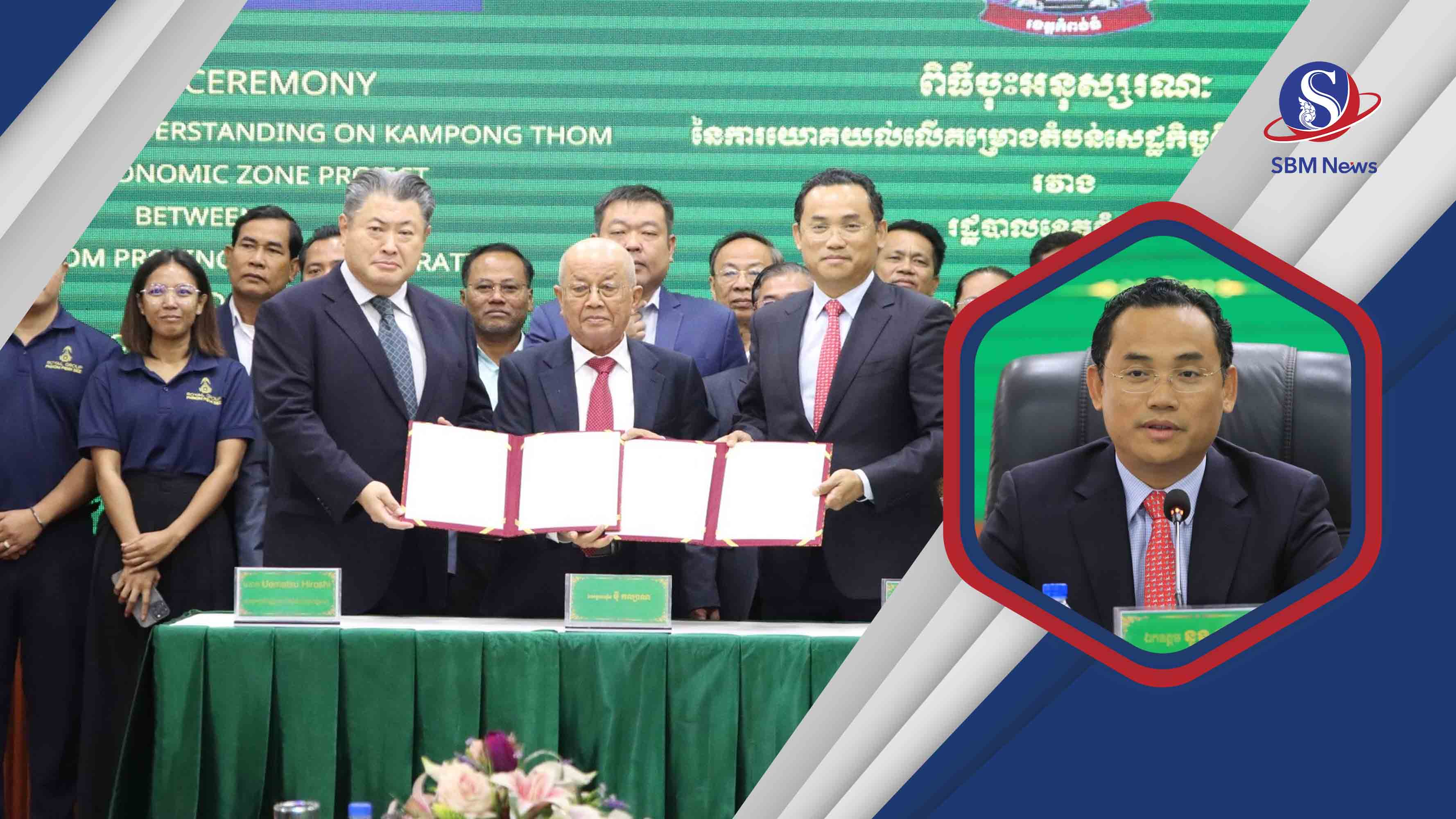 ក្រុងស្ទឹងសែន៖ រដ្ឋបាលខេត្តកំពង់ធំ បានចុះអនុស្សរណៈនៃការយោគយល់គ្នាជាមួយក្រុមហ៊ុនឯកជន រ៉ូយ៉ាល់គ្រុបភ្នំពេញ អេសអ៊ីហ្សិត ម.ក. សិក្សាសមិទ្ធិលទ្ធភាពបង្កើតសួនកសិ-ឧស្សាហកម្ម សម្រាប់កែច្នៃកសិផល លើផ្ទៃដីប្រមាណ៣០០ហិកតា នៅក្នុងខេត្តកំពង់ធំ…។