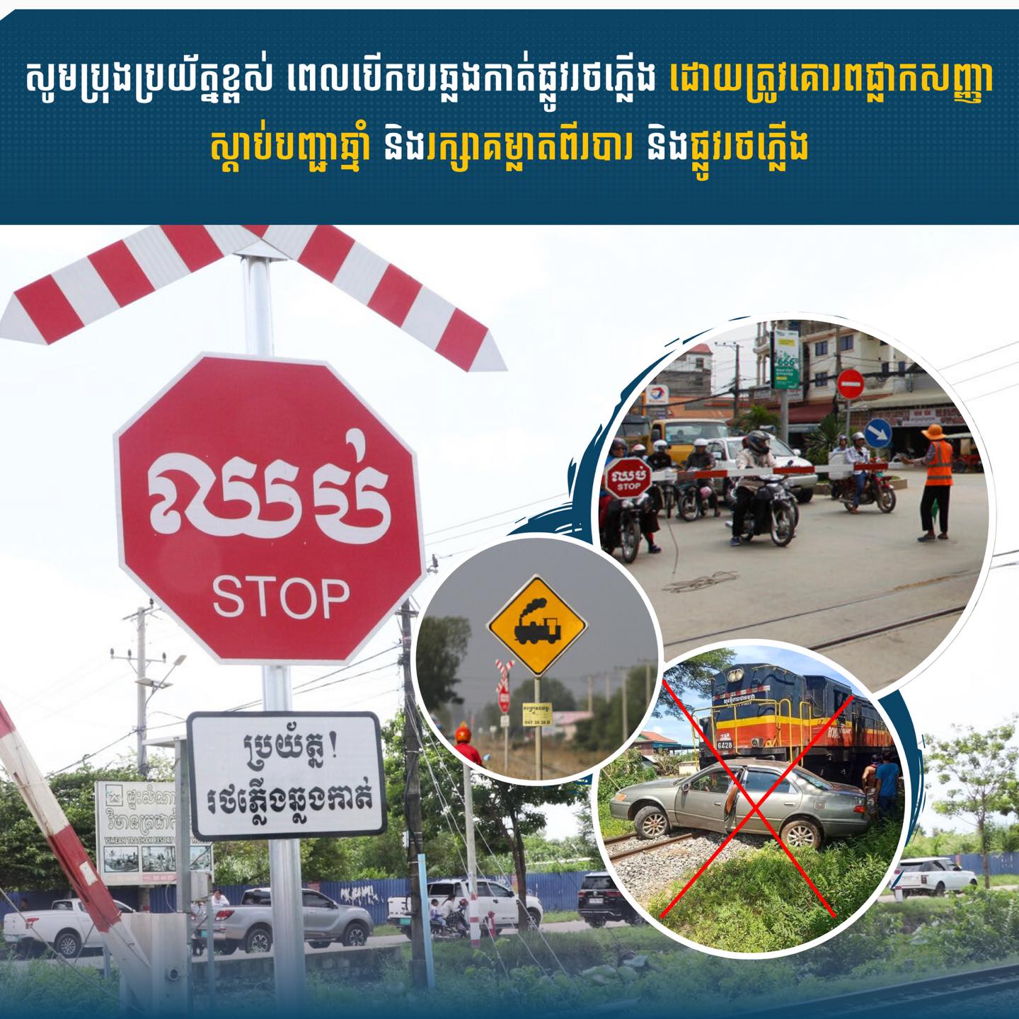 វិធានការឆ្លើយតបបន្ទាន់ដែលក្រសួង និងក្រុមហ៊ុនឯកជន រ៉ូយ៉ាល់ រេលវេ អនុវត្តមានដូចជា ការដាក់របារ និងការបំពាក់ហេដ្ឋារចនាសម្ព័ន្ធការពារសុវត្ថិភាព, ការបំពាក់ស្លាកសញ្ញាចរាចរណ៍ និងការអប់រំផ្សព្វផ្សាយ។ នេះបើតាមការបញ្ជាក់របស់ លោក ផន រឹម អ្នកនាំពាក្យក្រសួងសាធារណការ នៅរសៀលថ្ងៃទី២១ ខែមករា ឆ្នាំ២០២៦។ លោក ផន រឹម បង្ហាញរបាយការណ៍ក្នុងឆ្នាំ២០២៥ ថា កម្ពុជាមានករណីគ្រោះថ្នាក់ចរាចរណ៍លើផ្លូវដែកចំនួន២១លើក ហើយភាគច្រើននៃគ្រោះថ្នាក់ទាំងនោះ កើតឡើងដោយសារ មនុស្សស្រវឹង ឬវិកលចរិត ដេកលើផ្លូវដែកហើយត្រូវរថភ្លើងឆ្លងកាត់កិន។ ក្នុងទិសដៅឆ្លើយតប និងបង្ការបញ្ហាគ្រោះថ្នាក់ទាំងនោះ ក្រុមហ៊ុន រ៉ូយ៉ាល់ រេលវេ និងសហការជិតស្និទ្ធជាមួយនាយកដ្ឋានផ្លូវដែក និងអាជ្ញាធរមូលដ្ឋាន ដើម្បីបន្តធ្វើយុទ្ធនាការផ្សព្វផ្សាយ អប់រំដល់ប្រជាជនទូទៅឱ្យគោលរពតាមស្លាកសញ្ញាព្រមាន ហើយបង្កើនការប្រុងប្រយ័ត្នតាមផ្លូវដែលមានរថភ្លើងឆ្លងកាត់។
