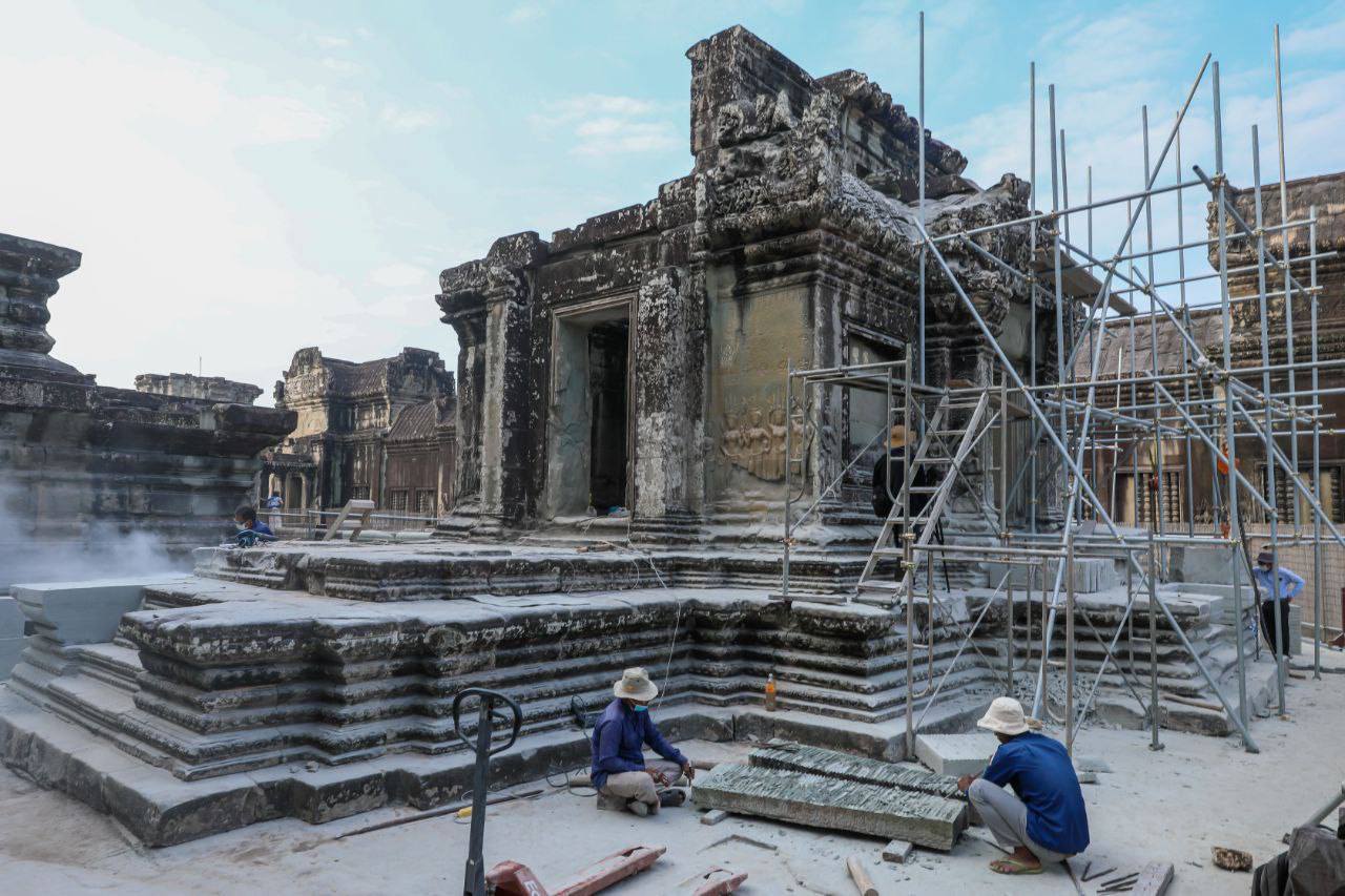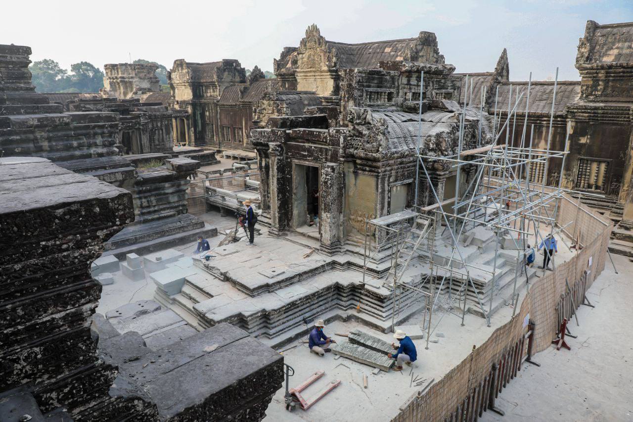 ក្រុងសៀមរាប៖ ការជួសជុលបណ្ណាល័យខាងជើង នៃជាន់ទី២របស់ប្រាសាទអង្គរវត្ត បានចាប់ផ្ដើមឡើងតាំងពីខែវិច្ឆិកា ឆ្នាំ២០២៥ ពេលនេះ សម្រេចបានប្រមាណ៦០ភាគរយ ដោយគ្រោងនឹងបញ្ចប់នៅក្នុងកំលុងខែកុម្ភៈ ឆ្នាំ២០២៦…។