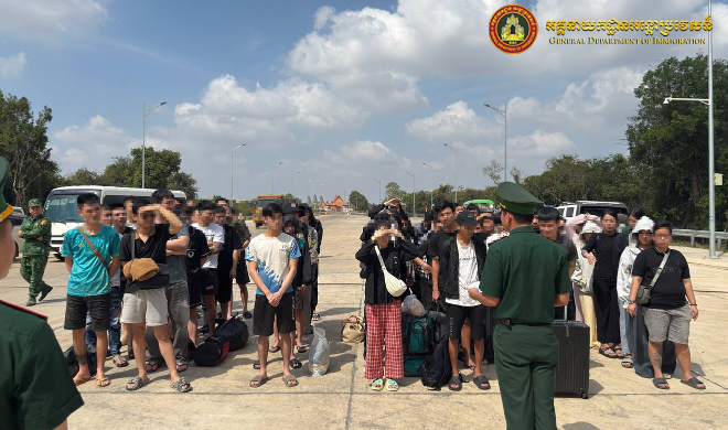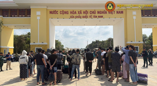 រាជធានីភ្នំពេញ៖ ជនជាតិវៀតណាម៥៩នាក់ (ស្រី១៦នាក់) ត្រូវបានបណ្តេញចេញពីកម្ពុជា តាមច្រកប៉ុស្តិ៍នគរបាលច្រកទ្វារព្រំដែនអន្តរជាតិម៉ឺនជ័យ ខេត្តព្រៃវែង ក្រោយរកឃើញពួកគេ លួចឆ្លងដែន ចូលមកស្នាក់នៅ និងធ្វើការងារខុសច្បាប់។ នេះបើតាមការផ្សព្វផ្សាយរបស់អគ្គនាយកអន្តោប្រវេសន៍ នៅថ្ងៃទី៣០ ខែមករា ឆ្នាំ២០២៦ តែពុំបានបញ្ជាក់លម្អិតថា ពួកគេធ្វើការខុសច្បាប់ផ្នែកអ្វីនោះទេ។