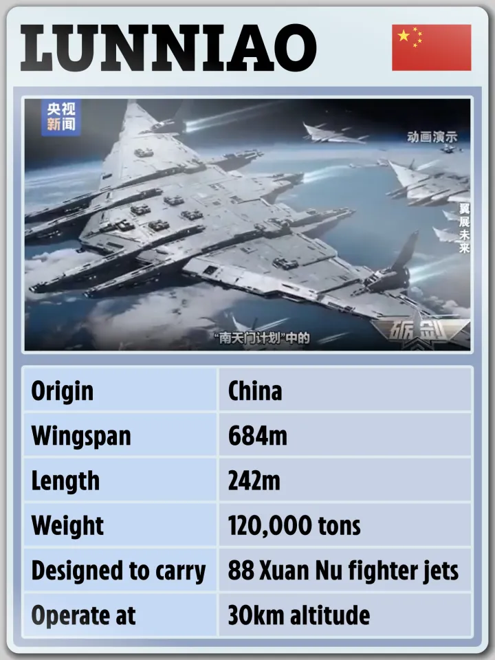 រដ្ឋធានីប៉េកាំង៖ ពិភពលោកកំពុងបើកភ្នែកធំៗ សម្លឹងមើលរដ្ឋធានីប៉េកាំងមិនដាក់ភ្នែក បន្ទាប់ពីប្រព័ន្ធផ្សព្វផ្សាយរដ្ឋចិន បានទម្លាយចេញនូវគម្រោង «Luanniao» ដែលត្រូវបានគេដាក់ឈ្មោះថា ជាយានផ្ទុកយន្តហោះអវកាសធំជាងគេបំផុតរបស់ពិភពលោក ហើយត្រៀមនឹងក្លាយជាបិសាចដែនអាកាស ដែលគ្មានគូប្រៀបក្នុងពេលអនាគត។