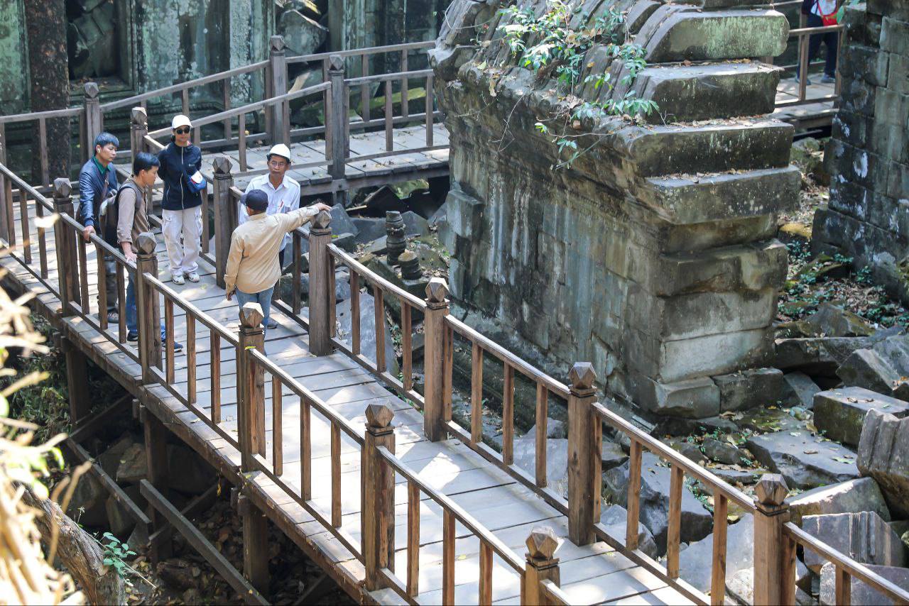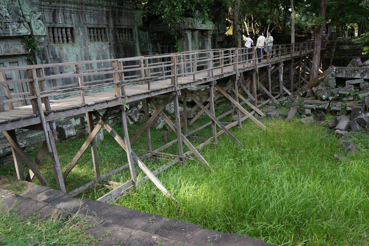 ក្រុងសៀមរាប៖ អ្នកជំនាញនាយកដ្ឋានអភិរក្សប្រាសាទ និងបុរាណវិទ្យានៃអាជ្ញាធរជាតិអប្សរា បាននិងកំពុងសម្រុកជួសជុលស្ពានឈើនៅប្រាសាទបេងមាលា ដែលមានការពុកផុយ និងទ្រុឌទ្រោមខ្លាំង ដើម្បីឱ្យភ្ញៀវអាចដើរទស្សនាប្រាសាទកាន់តែងាយស្រួលជាងមុន…។