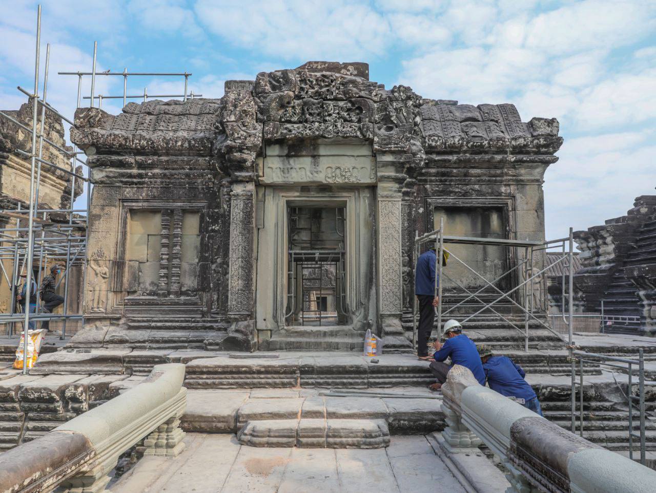 សូមជម្រាបថា ការជួសជុលបណ្ណាល័យខាងជើង នៃជាន់ទី២របស់ប្រាសាទអង្គរវត្ត បានចាប់ផ្ដើមឡើងតាំងពីខែវិច្ឆិកា ឆ្នាំ២០២៥ ហើយកន្លងទៅបុរាណវិទូនៃអាជ្ញាធរជាតិអប្សរា ក៏ធ្លាប់បានជួលជុល និងអភិរក្សថ្មមួយចំនួននៅបរិវេណប្រាសាទអង្គរវត្ត ដូចជា៖ ជួសជុលជើងសសរពុកផុយចំនួន១០ដើម, ព្រះពុទ្ធរូបទាំងបួនអង្គនៅជាន់បាកាន, ជួសជុលជើងសសរនៅជាន់ព្រះពាន់ចំនួនជាង៣០ និងជួសជុលចម្រឹងបង្អួចមួយចំនួននៅជិតលោកតារាជ។ គួរជ្រាបថា ប្រាសាទអង្គរវត្ត ត្រូវបានកសាងឡើងដោយព្រះបាទសូរ្យវរ្ម័នទី២ នៅដើមសតវត្សរ៍ទី១២ ស្ថិតនៅក្នុងរាជធានី យសោធរបុរៈ។