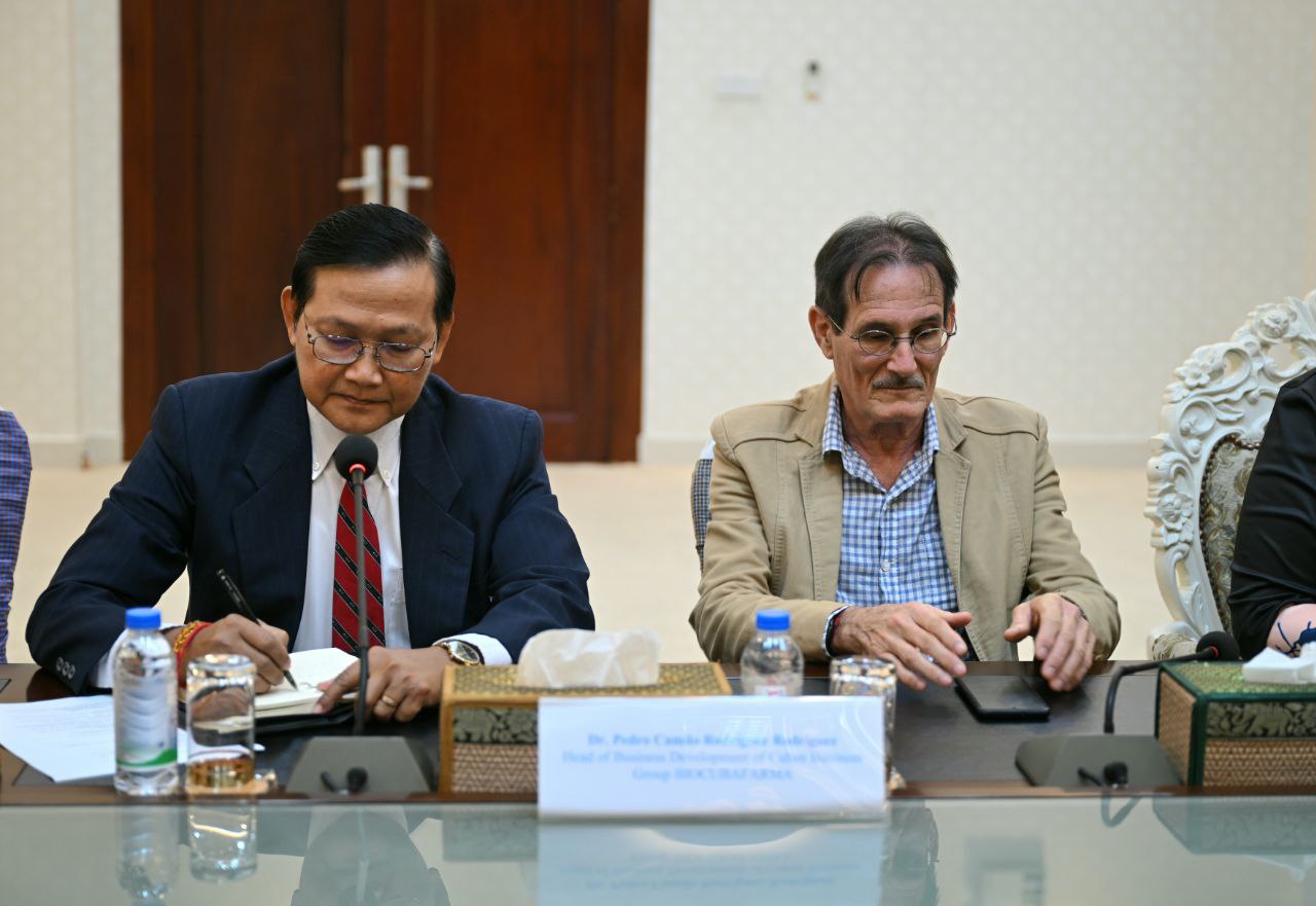 ក្រសួងបញ្ជាក់ថា ការពិភាក្សានេះ ធ្វើឡើងកាលថ្ងៃទី៩កុម្ភៈ តាមរយៈជំនួបសម្ដែងការគួរសម និងពិភាក្សាការងារ រវាងរដ្ឋលេខាធិការក្រសួងសុខាភិបាលកម្ពុជា លោកវេជ្ជបណ្ឌិត ង៉ូវ កាង រួមជាមួយលោកស្រីឯកអគ្គរដ្ឋទូតគុយបា មីឡេណា ការីដាដ ហ្សាល់ឌីវ៉ា ប៉េដ្រា និងលោកវេជ្ជបណ្ឌិត ប៉េដ្រូ កាមីឡូ រ៉ូឌ្រីហ្គេស (Pedro Camilo Rodríguez Rodríguez) ប្រធានផ្នែកអភិវឌ្ឍន៍អាជីវកម្មនៃក្រុមហ៊ុនគុយបា BIO CUBA FARMA។ ក្នុងជំនួប ភាគីទាំងពីរបានជជែកពីការជំរុញគំរូអាជីវកម្ម និងកិច្ចសហប្រតិបត្តិការ សម្រាប់ការនាំចូល និងការប្រើប្រាស់ផលិតផលជីវឱសថ របស់ប្រទេសគុយបា ផ្តោតសំខាន់លើការព្យាបាល ជំងឺមហារីក និងជំងឺទឹកនោមផ្អែម ស្របតាមតម្រូវការព្យាបាល និងអាទិភាពសុខាភិបាលកម្ពុជា។