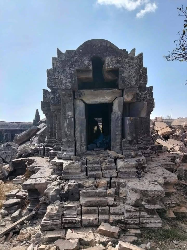 សូមរំឭកខ្លីថា ទីតាំងវប្បធម៌ប្រវត្តិសាស្ត្រកម្ពុជា ជាច្រើនរួមទាំងប្រាង្គប្រាសាទមួយចំនួនដែលបានចុះក្នុងបញ្ជីជាបេតិកភណ្ឌពិភពលោករួចហើយ ក៏នៅតែរងការបំផ្លាញដោយសង្គ្រាមថៃឈ្លានពានក្នុងឆ្នាំ២០២៥។ ជាក់ស្តែង ប្រាសាទព្រះវិហារ បានរងការខូចខាតយ៉ាងធ្ងន់ធ្ងរ។ យោងតាមភស្តុតាង រូបថត និងវីដេអូ សំណង់ស្ថាបត្យកម្មសំខាន់ៗ ស្ទើរតែទាំងអស់នៃប្រាសាទ ចាប់ពីគោបុរៈទី១ ដល់គោបុរៈទី៥ រួមទាំងស្ពានហាលតភ្ជាប់ទាំងអស់ និងជណ្តើរបុរាណខាងជើង បានទទួលរងផលប៉ះពាល់យ៉ាងធ្ងន់ធ្ងរពីការបាញ់ និងទម្លាក់គ្រាប់បែកពីយន្តហោះF-16 របស់យោធាថៃ៕