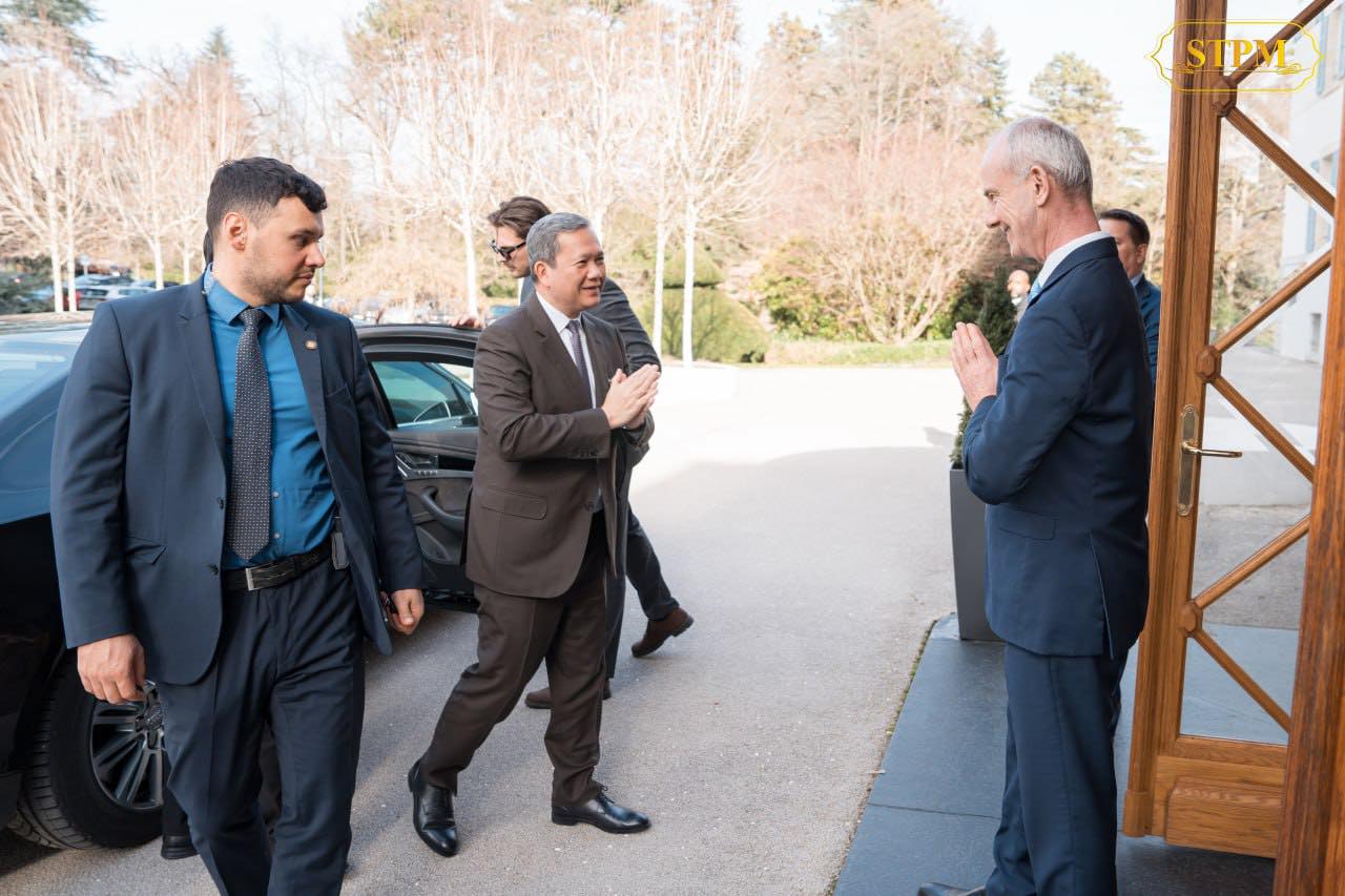 ប្រទេសស្វីស៖ ស្របពេលប្រទេស កំពុងរងគ្រោះព្រោះសង្គ្រាមថៃឈ្លានពានរំលោភចូលកាន់កាប់ព័ទ្ធយកទឹកដី និងលំនៅឋានពលរដ្ឋច្រើនគ្រួសារ តាមបណ្តោយព្រំដែន មេដឹកនាំកម្ពុជា ក្នុងដំណើរទស្សនកិច្ចនៅទីក្រុងហ្សឺណែវ ប្រទេសស្វីស បានជួបសម្ដែងការគួរសម និងពិភាក្សាការងារជាបន្តបន្ទាប់ជាមួយឥស្សរជនអន្តរជាតិនានា កាលពីថ្ងៃចន្ទទី២៣ ខែកុម្ភៈ ឆ្នាំ២០២៦...។