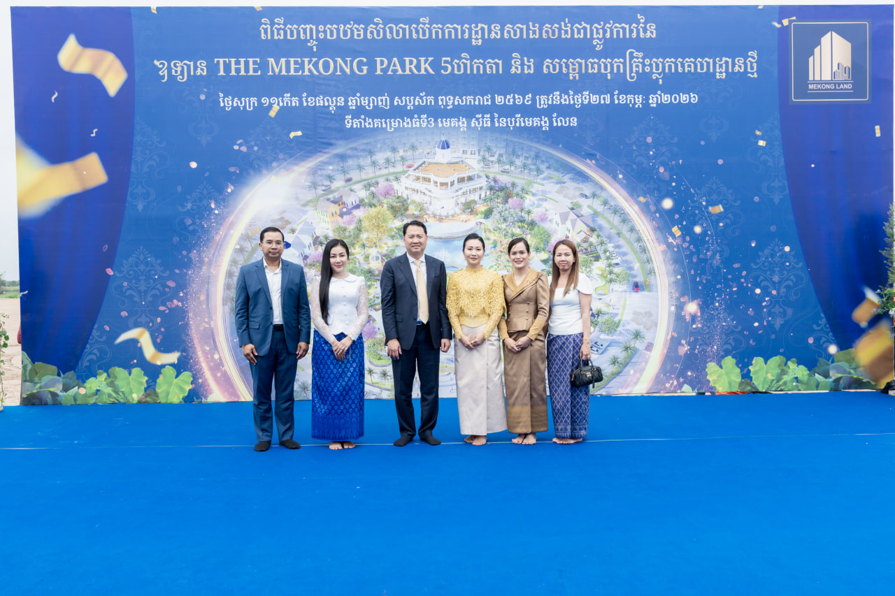 រាជធានីភ្នំពេញ៖ នាព្រឹកថ្ងៃទី២៧ ខែកុម្ភៈ ឆ្នាំ២០២៦ បុរី មេគង្គ លែន បានរៀបចំប្រារព្ធ«ពិធីបញ្ចុះបឋមសិលាបើកការដ្ឋានសាងសង់ជាផ្លូវការនៃឧទ្យាន The Mekong Park ៥ហិកតា និងសម្ពោធបុកគ្រឹះប្លុកគេហដ្ឋានថ្មី» ក្នុងគម្រោង «មេគង្គ ស៊ីធី» ស្ថិតនៅក្នុងតំបន់ជ្រោយចង្វា តាមបណ្ដោយផ្លូវជាតិ ៦A ដោយមានវត្តមានដ៏ខ្ពង់ខ្ពស់របស់អ្នកឧកញ៉ា ជាម ឃុនណាត ស្ថាបនិក និងអគ្គនាយក នៃ បុរី មេគង្គ លែន និងលោកជំទាវ ហេង ចិន្ដា ព្រមទាំងគណៈគ្រប់គ្រង បុរី មេគង្គ លែន និងភ្ញៀវកិត្តិយស។