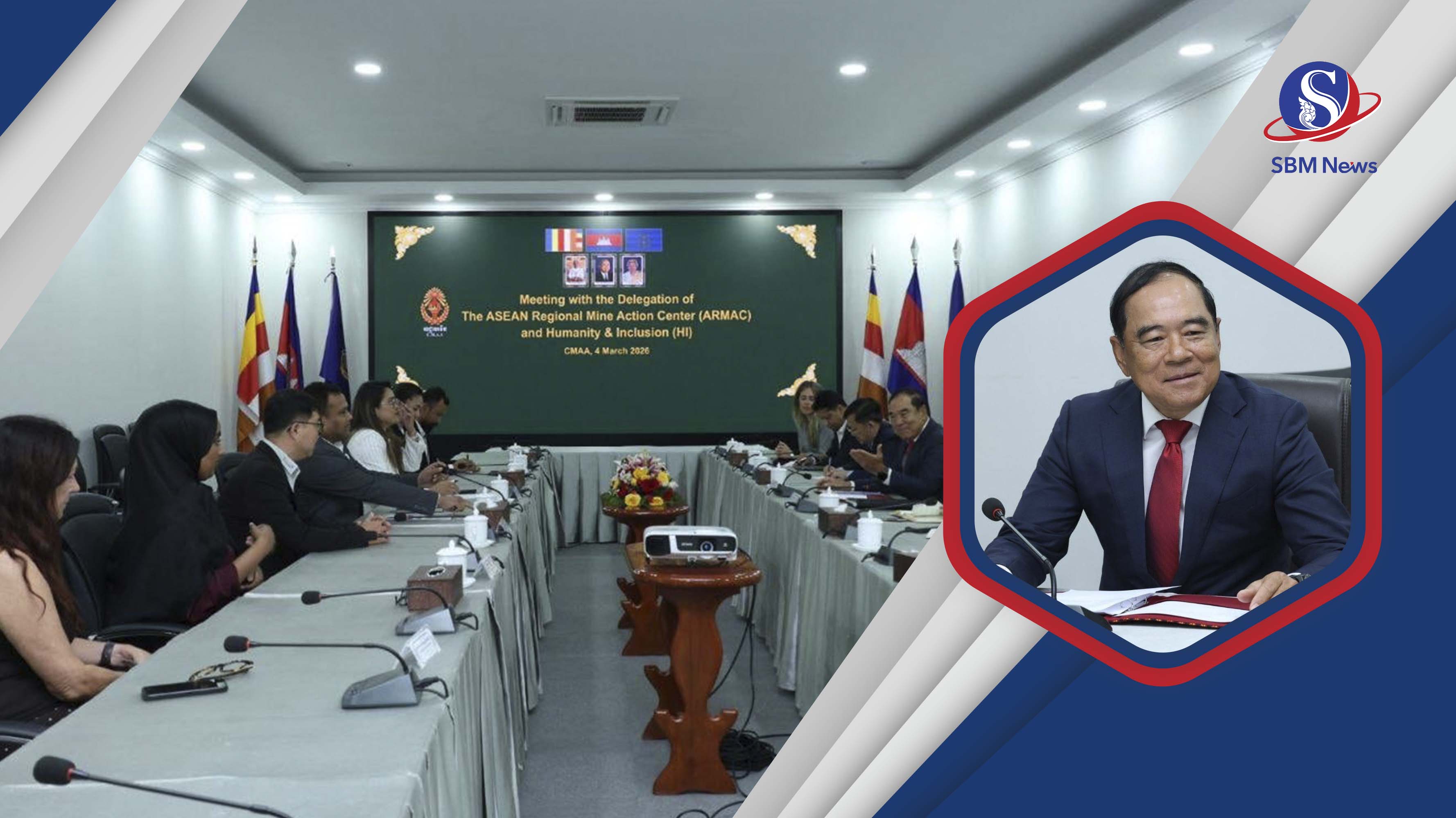 ការស្នើបែបនេះ ក្នុងឱកាសលោកទេសរដ្ឋមន្រ្តី ជួបពិភាក្សាការងារជាមួយ លោកស្រី ប៊ុត រតនា នាយិកាប្រតិបត្តិនៃមជ្ឈមណ្ឌលតំបន់អាស៊ានសម្រាប់សកម្មភាពមីន (ARMAC) និងលោក Rejib DAKUA នាយកប្រចាំប្រទេសនៃអង្គការ Humanity & Inclusion (H&I) នៅថ្ងៃទី០៤ ខែមីនា ឆ្នាំ២០២៦ នាទីស្នាក់ការអាជ្ញាធរមីន។ លោកទេសរដ្ឋមន្រ្តី លី ធុជ បានថ្លែងអំណរគុណ និងកោតសរសើរដល់មជ្ឈមណ្ឌល ARMAC ចំពោះភាពជាដៃគូយ៉ាងជិតស្និទ្ធក្នុងកិច្ចការសម្របសម្រួលវិស័យសកម្មភាពមីនទាំងនៅកម្ពុជា និងថ្នាក់តំបន់។