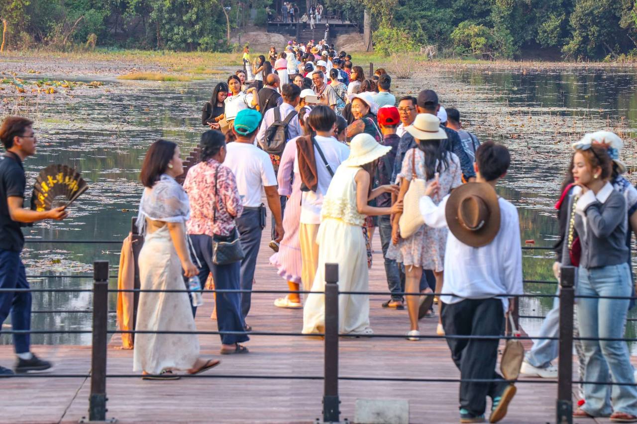 ក្រុងសៀមរាប៖ បារាយណ៍នាគព័ន្ធ គឺជាឋានសួគ៌នៃការគយគន់ថ្ងៃលិច ដែលកំពុងក្លាយជាគោលដៅពេញនិយមបំផុតសម្រាប់ភ្ញៀវទេសចរជាតិ-អន្តរជាតិ។ នៅពេលសូរិយារៀបអស្តង្គត ពន្លឺពណ៌មាសក្រហមឆ្អិនឆ្អៅ បានជះចាំងប៉ប្រះផ្ទៃទឹកបារាយណ៍ បង្កើតបានជាផ្ទាំងទស្សនីយភាពដ៏ជក់ចិត្ត ដក់ជាប់ក្នុងអារម្មណ៍អ្នកទស្សនាឥតជិនណាយ។