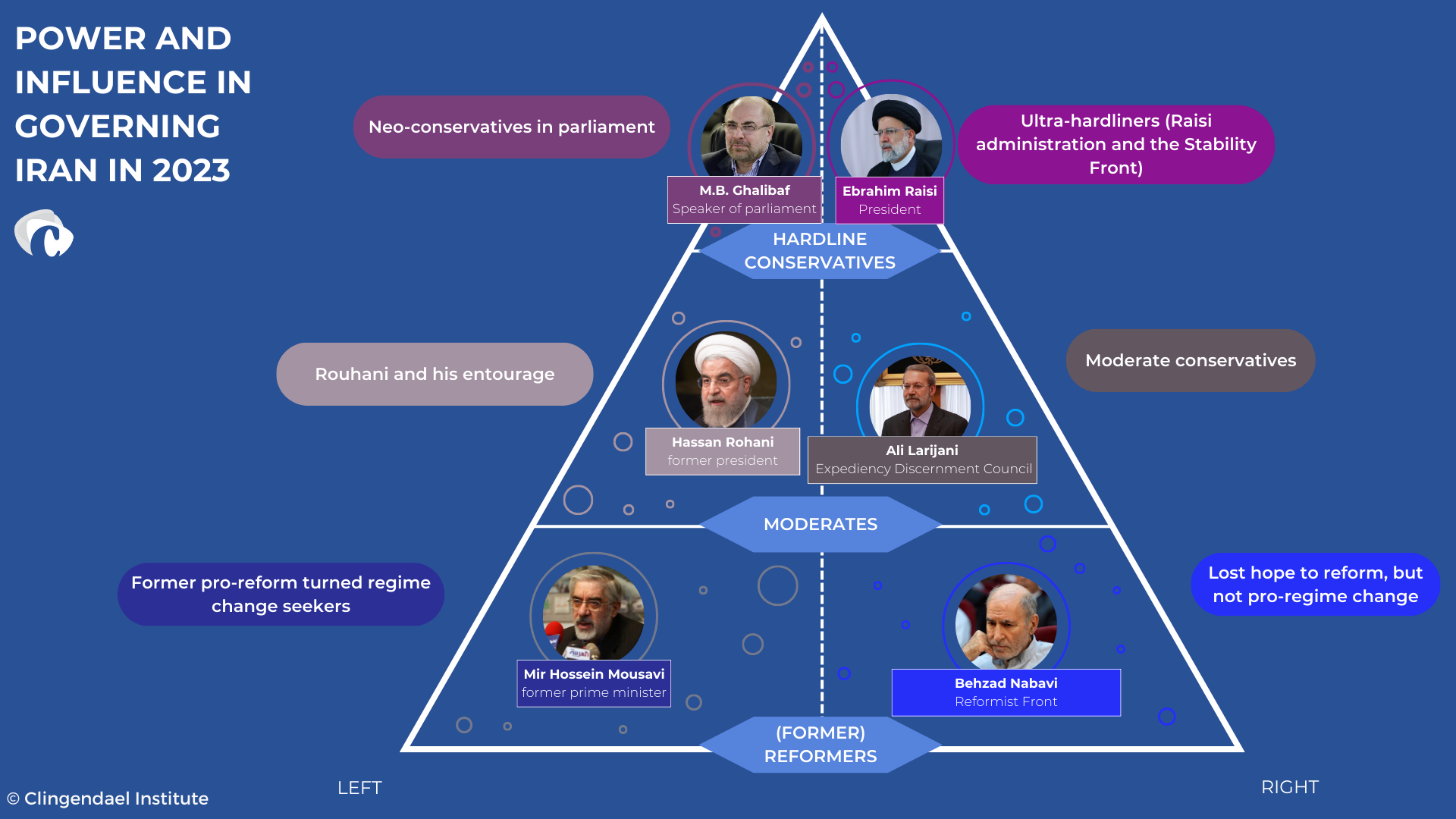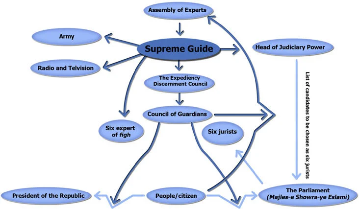តើប្រព័ន្ធគ្រប់គ្រងរដ្ឋអ៊ីរ៉ង់មានលក្ខណៈស្មុគស្មាញកម្រិតណា ទើបធ្វើឱ្យរបបមួយនេះមិនដួលរលំភ្លាមៗ...? មែនទែនទៅ អំណាចរដ្ឋាភិបាលនៅអ៊ីរ៉ង់ គេបែងចែកជាទម្រង់ពីរ៉ាមីត ដោយមានមេដឹកនាំកំពូលជាចំណុចស្នូលនៃអំណាច និងមានអំណាចក្តាប់ពេញដៃ។ ដំណែងមេដឹកនាំកំពូលមិនមែនគ្រាន់តែជាប្រមុខរដ្ឋទេ ប៉ុន្តែគឺជាបព្វជិតសាសនាកំពូលដែលមានអំណាចលើសរដ្ឋធម្មនុញ្ញ ហើយដំណែងនេះអាចកាន់កាប់បញ្ជាការដ្ឋានកងទ័ពទាំងស្រុង មានសិទ្ធិតែងតាំងប្រធានតុលាការ និងគ្រប់គ្រងប្រព័ន្ធផ្សព្វផ្សាយរដ្ឋ។ ទោះបីមេដឹកនាំកំពូលស្លាប់ ក៏មាន«ក្រុមប្រឹក្សាអ្នកជំនាញ (Assembly of Experts)» រង់ចាំជ្រើសរើសអ្នកបន្តវេនភ្លាមៗ ដើម្បីកុំឱ្យអំណាចដាច់ដង្ហើម។ ប្រធានាធិបតី គឺជាតំណែងធំលំដាប់ទី២ក្នុងប្រទេស ដែលប្រសូត្រចេញពីការបោះឆ្នោតរបស់ប្រជាជន ប៉ុន្តែត្រូវឆ្លងកាត់ការយល់ព្រមពីមេដឹកនាំកំពូល។ ប្រធានាធិបតីទទួលបន្ទុកសេដ្ឋកិច្ច ការងាររដ្ឋបាល និងកិច្ចការស៊ីវិល។ យ៉ាងណា ប្រធានាធិបតីអ៊ីរ៉ង់មិនសូវមានអំណាចទេ ព្រោះគ្មានសិទ្ធិបញ្ជាកងទ័ពឆ្មាំបដិវត្តន៍(IRGC)បានឡើយ។