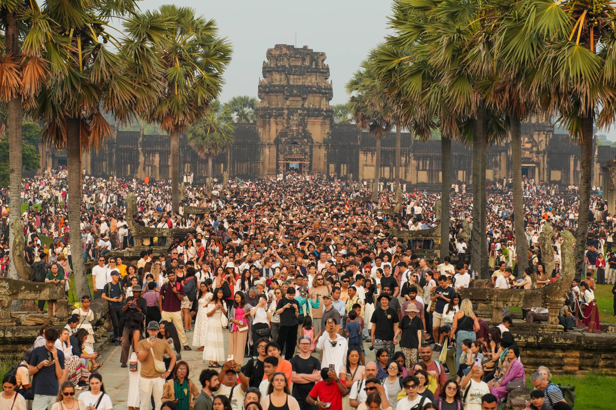 ក្រុងសៀមរាប៖ ព្រឹត្តិការណ៍សមរាត្រី ឬ ថ្ងៃរះចំកំពូលប្រាសាទអង្គរវត្ត នាព្រលឹមស្រាងៗថ្ងៃទី២២ ខែមីនា ឆ្នាំ២០២៦នេះ បានទាក់ទាញភ្ញៀវទេសចរជាតិ និងអន្តរជាតិប្រមាណជាង៣ម៉ឺននាក់ មកផ្ដិតយកទិដ្ឋភាពដ៏កម្រ និងអស្ចារ្យនៅប្រាសាទដ៏អច្ឆរិយៈមួយនេះ...។