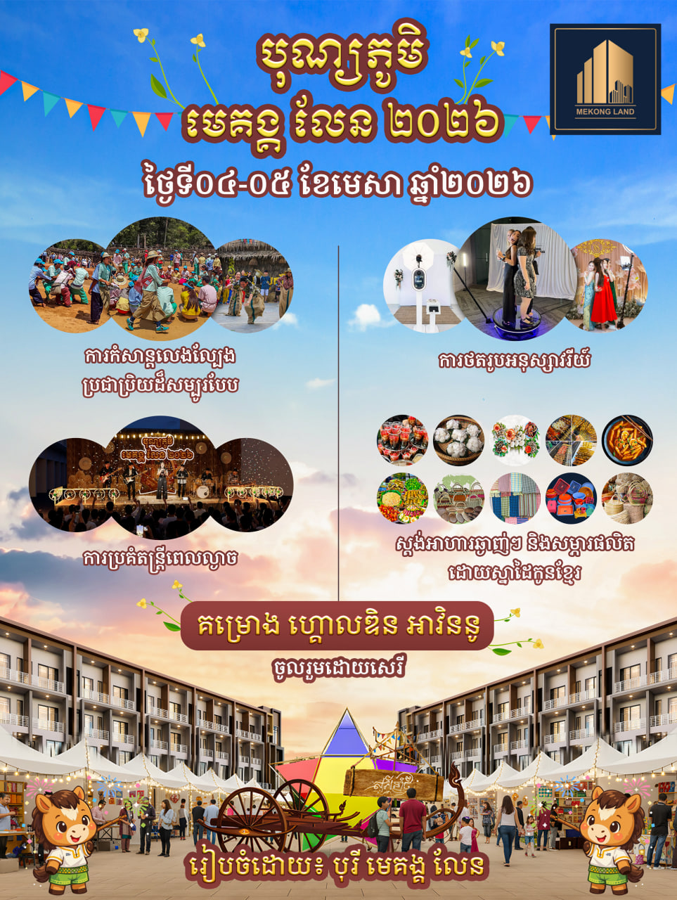 រាជធានីភ្នំពេញ៖ ដើម្បីចូលរួមអបអរសាទរពិធីបុណ្យចូលឆ្នាំប្រពៃណីជាតិខ្មែរ គាំទ្រការអភិរក្សវប្បធម៌ជាតិ និងលើកស្ទួយល្បែងប្រជាប្រិយខ្មែរ បុរី មេគង្គ លែន បានប្រកាសរៀបចំកម្មវិធី «បុណ្យភូមិ មេគង្គ លែន ២០២៦» ដែលនឹងប្រព្រឹត្តទៅរយៈពេល២ថ្ងៃពេញ គឺនៅថ្ងៃទី៤ និងទី៥ ខែមេសា ឆ្នាំ២០២៦ខាងមុខ...។