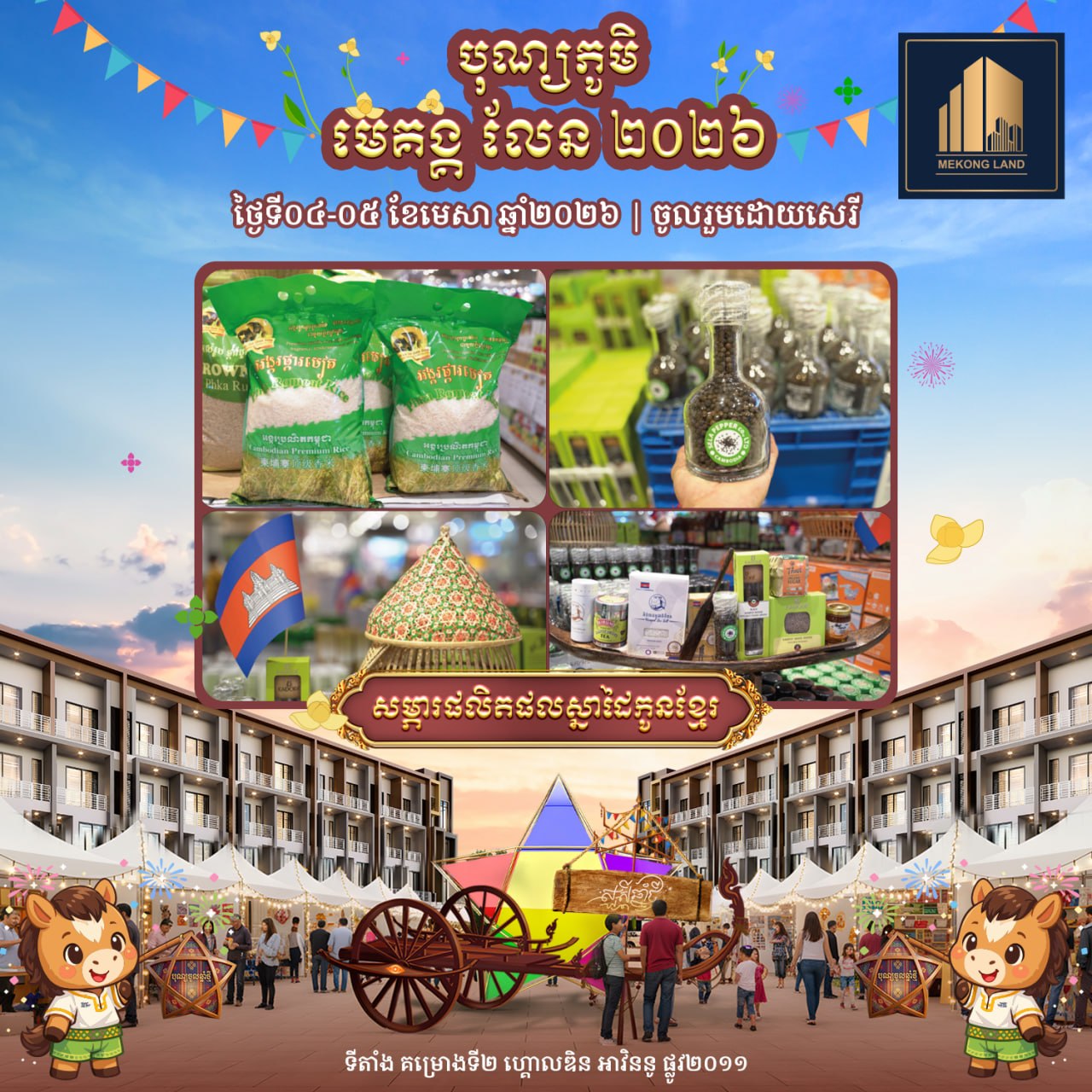 ក្រៅពីការកម្សាន្ត កម្មវិធីនេះ ក៏ជាវេទិកាមួយយ៉ាងសំខាន់ក្នុងការលើកស្ទួយផលិតផលខ្មែរ តាមរយៈការដាក់បង្ហាញស្ដង់ផលិតផលស្នាដៃកូនខ្មែរ និងស្ដង់អាហារភេសជ្ជៈឆ្ងាញ់ៗជាច្រើនមុខ។ បច្ចុប្បន្ន កម្មវិធីក៏បាននិងកំពុងបើកទទួលជួលស្ដង់សម្រាប់អាជីវករដែលមានបំណងចង់លក់ដូរ ឬតាំងបង្ហាញផលិតផល។ ការទទួលជួលស្ដង់នឹងត្រូវបិទបញ្ចប់នៅថ្ងៃទី២ ខែមេសា ឆ្នាំ២០២៦ វេលាម៉ោង៩យប់។ អាជីវករដែលមានចំណាប់អារម្មណ៍ អាចទំនាក់ទំនងតាមរយៈលេខទូរសព្ទ ០៩៣ ៩០០ ១៦៤ ឬ ០៧៧ ៥៨២ ២៧៨។