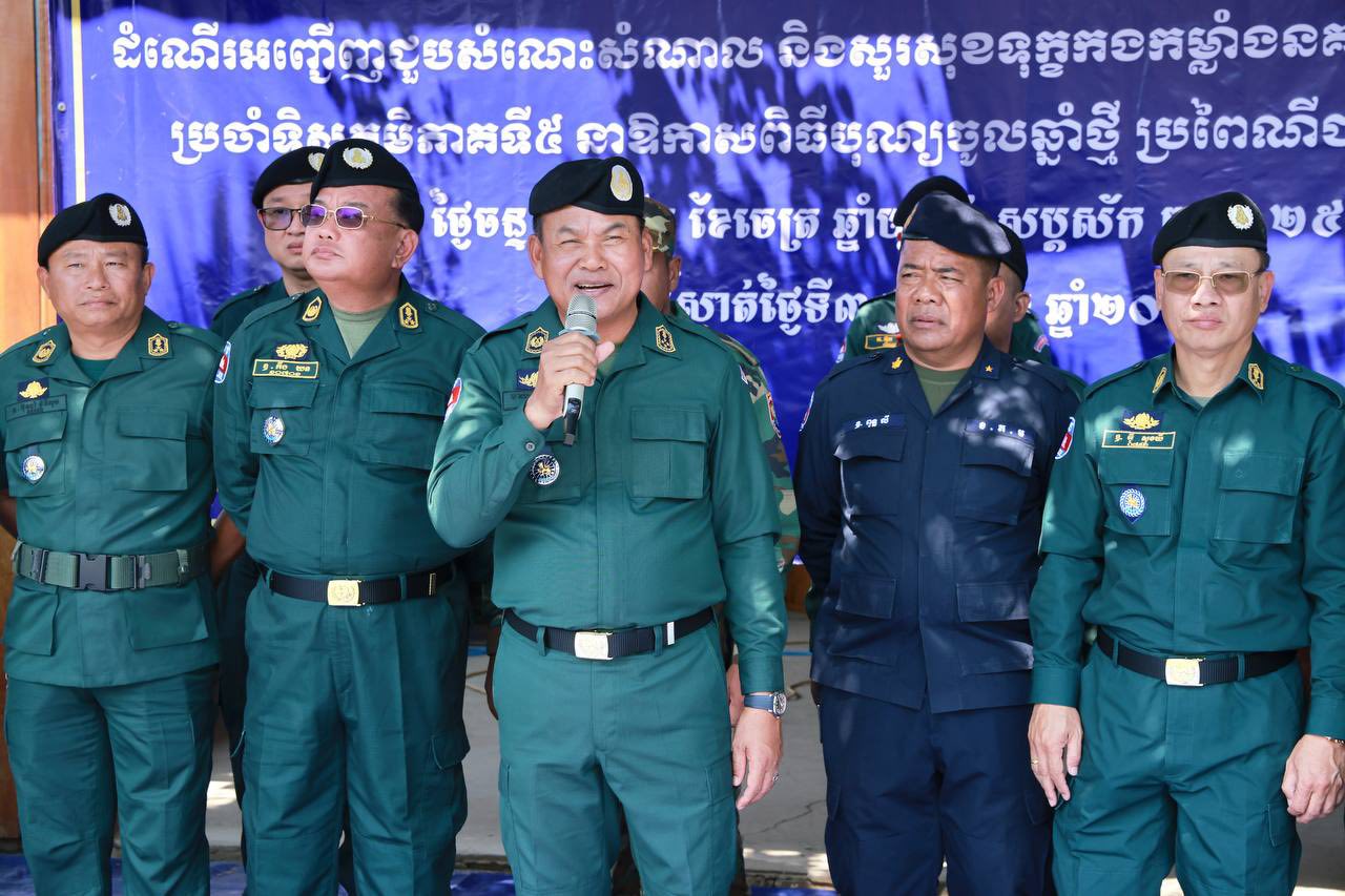 ក្រុងពោធិ៍សាត់៖ ប្រទេសកំពុងរងការឈ្លានពាន លោកនាយឧត្តមសេនីយ៍ ស ថេត អគ្គស្នងការនគរបាលជាតិ បានណែនាំយ៉ាងម៉ឺងម៉ាត់ដល់កងកម្លាំងនគរបាលការពារព្រំដែនទាំងអស់ ត្រូវបន្ដប្រកៀកស្មាគ្នាឱ្យរឹងមាំ ស្អិតល្មួត តស៊ូ និងក្រាញននៀល ជាមួយកងយោធពលខេមរភូមិន្ទ ដើម្បីការពារបូរណភាពទឹកដី និងអធិបតេយ្យជាតិ ប្រឆាំងនឹងការឈ្លានពានរបស់យោធាថៃ តាមគ្រប់ទម្រង់ទាំងអស់…។