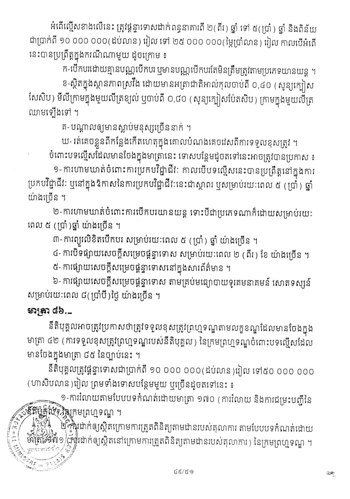 ដូចក្នុងរបាយការណ៍របស់សមត្ថកិច្ចជំនាញដែរ អយ្យការ អះអាងថា លោក មិន ហេង វ័យ៥៦ឆ្នាំ មានជាតិអាកុល០,៩២មិល្លីក្រាមក្នុង១លីត្រខ្យល់។ យោងតាមមាត្រា៨៥ នៃច្បាប់ចរាចរណ៍ផ្លូវគោក ស្មៀនឃុំប្រមឹកមិនចេះគិតពីអាយុជីវិតគេរូបនេះ ប្រឈមជាប់ទោសពី២ឆ្នាំដល់៥ឆ្នាំ។ ក្រោយសាកសួរ និងចោទប្រកាន់រួច អយ្យការ ក៏បញ្ជូនជនត្រូវចោទទៅកាន់ចៅក្រមស៊ើបសួរ ដើម្បីចាត់ការបន្ត។