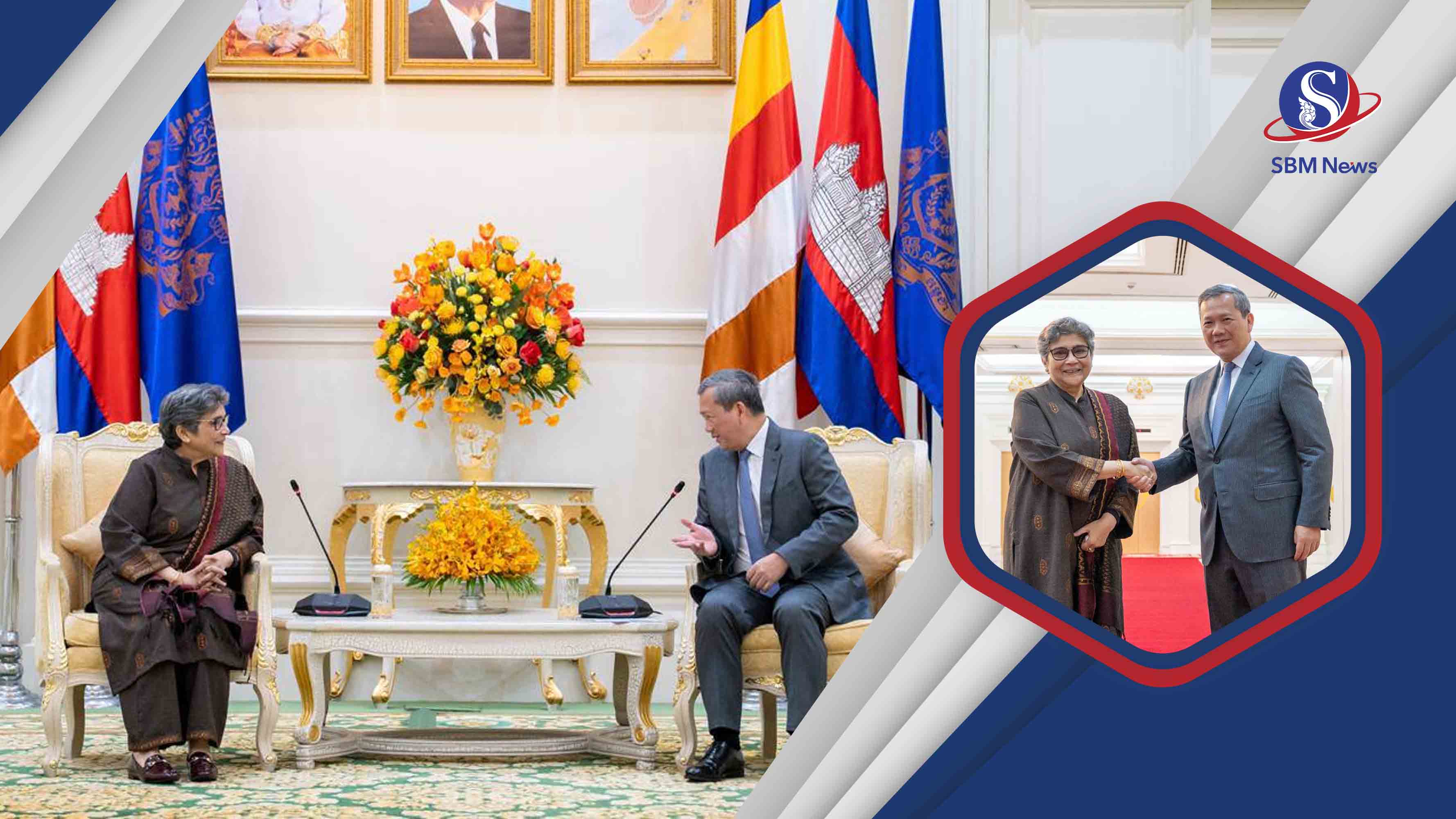 ឆ្លើយតបនឹងការលើកឡើងរបស់លោកស្រី រ៉ាបាប ហ្វាទីម៉ា, សម្ដេចធិបតី ហ៊ុន ម៉ាណែត នាយករដ្ឋមន្រ្តីនៃកម្ពុជា បានថ្លែងអំណរគុណដល់អង្គការសហប្រជាជាតិ ដែលបានរួមចំណែកដល់ការកសាង ស្ដារ និងអភិវឌ្ឍសង្គម-សេដ្ឋកិច្ចកម្ពុជា ហើយសម្ដេចធិបតី ក៏បានស្វាគមន៍ចំពោះការបង្កើតក្រុមការងារចំពោះកិច្ចរបស់អង្គការសហប្រជាជាតិ ដើម្បីគាំទ្រដំណើរការចាកចេញពីក្រុមប្រទេសអភិវឌ្ឍតិចតួចរបស់កម្ពុជា។ សម្ដេចសង្កត់ធ្ងន់ថា រាជរដ្ឋាភិបាល បានដាក់ចេញនូវវិធានការជាក់ស្ដែង ដើម្បីកសាងភាពធន់របស់កម្ពុជា តាមរយៈការដាក់ចេញនូវយុទ្ធសាស្ត្របញ្ចកោណដំណាក់កាលទី១ ផ្ដោតលើការអភិវឌ្ឍមូលធនមនុស្ស, ការដាក់ចេញការកែទម្រង់វិស័យអប់រំ, សុខាភិបាល, និងការបណ្ដុះបណ្ដាលវិជ្ជាជីវៈ ។ល។ ប្រមុខរាជរដ្ឋាភិបាលកម្ពុជា បានប្រកាសបន្តកិច្ចសហប្រតិបត្តិការយ៉ាងជិតស្និទ្ធជាមួយអង្គការសហប្រជាជាតិ ក្នុងក្របខ័ណ្ឌសន្តិភាព និងក្របខ័ណ្ឌដទៃទៀត៕