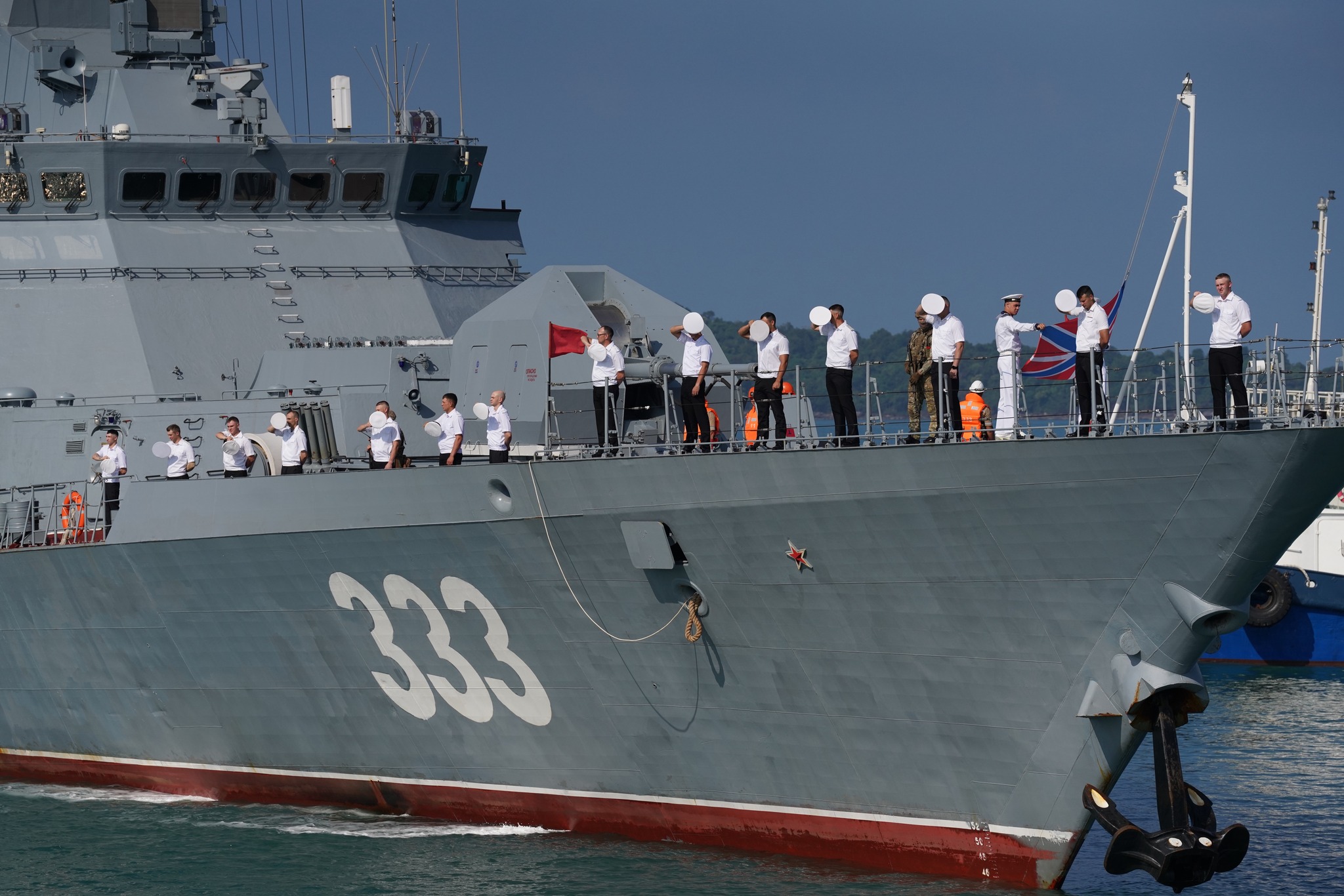 ក្រុងព្រះសីហនុ៖ នាវាចម្បាំងកងទ័ពជើងទឹកសហព័ន្ធរុស្ស៊ីចំនួន៣គ្រឿង បានចូលចតទស្សនកិច្ចនៅកម្ពុជា ចាប់ពីថ្ងៃទី៥ដល់ថ្ងៃទី៨ ខែមេសា ឆ្នាំ២០២៦។ ទីភ្នាក់ងារសារព័ត៌មានកម្ពុជា (AKP) រាយការណ៍ថា នាវាចម្បាំងកងទ័ពជើងទឹកសហព័ន្ធរុស្ស៊ីចំនួន ៣គ្រឿង ដែលចូលចតនេះមានឈ្មោះ SOVERSHENNYY លេខ៣៣៣, REZKIY លេខ៣៤៣ និងនាវា PECHENGA...។