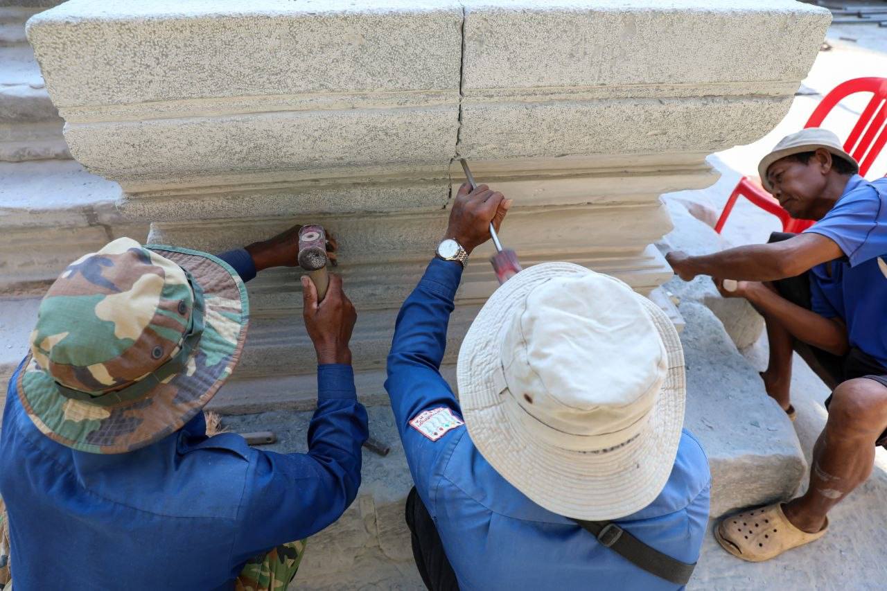 ក្នុងនោះ ក្រុមការងារលោកក៏កំពុងអនុវត្តគម្រោងសាកល្បង ដោយដាក់សសរពេជ្រចំនួន២ ដើម្បីទ្រទម្ងន់ផ្តែរក្នុងទិសដៅជួយរចនាសម្ព័ន្ធបណ្ណាល័យឱ្យកាន់តែរឹងមាំ។ សូមជម្រាបថា ក្រៅពីជួសជុលបណ្ណាល័យខាងជើង កន្លងមកបុរាណវិទូនៃអាជ្ញាធរជាតិអប្សរា ក៏ធ្លាប់បានជួលជុល និងអភិរក្សថ្មមួយចំនួននៅបរិវេណប្រាសាទអង្គរវត្ត ដូចជា៖ ជួសជុលជើងសសរពុកផុយចំនួន១០ដើម, ព្រះពុទ្ធរូបទាំងបួនអង្គនៅជាន់បាកាន, ជួសជុលជើងសសរនៅជាន់ព្រះពាន់ចំនួនជាង៣០ និងជួសជុលចម្រឹងបង្អួចមួយចំនួននៅជិតលោកតារាជ៕