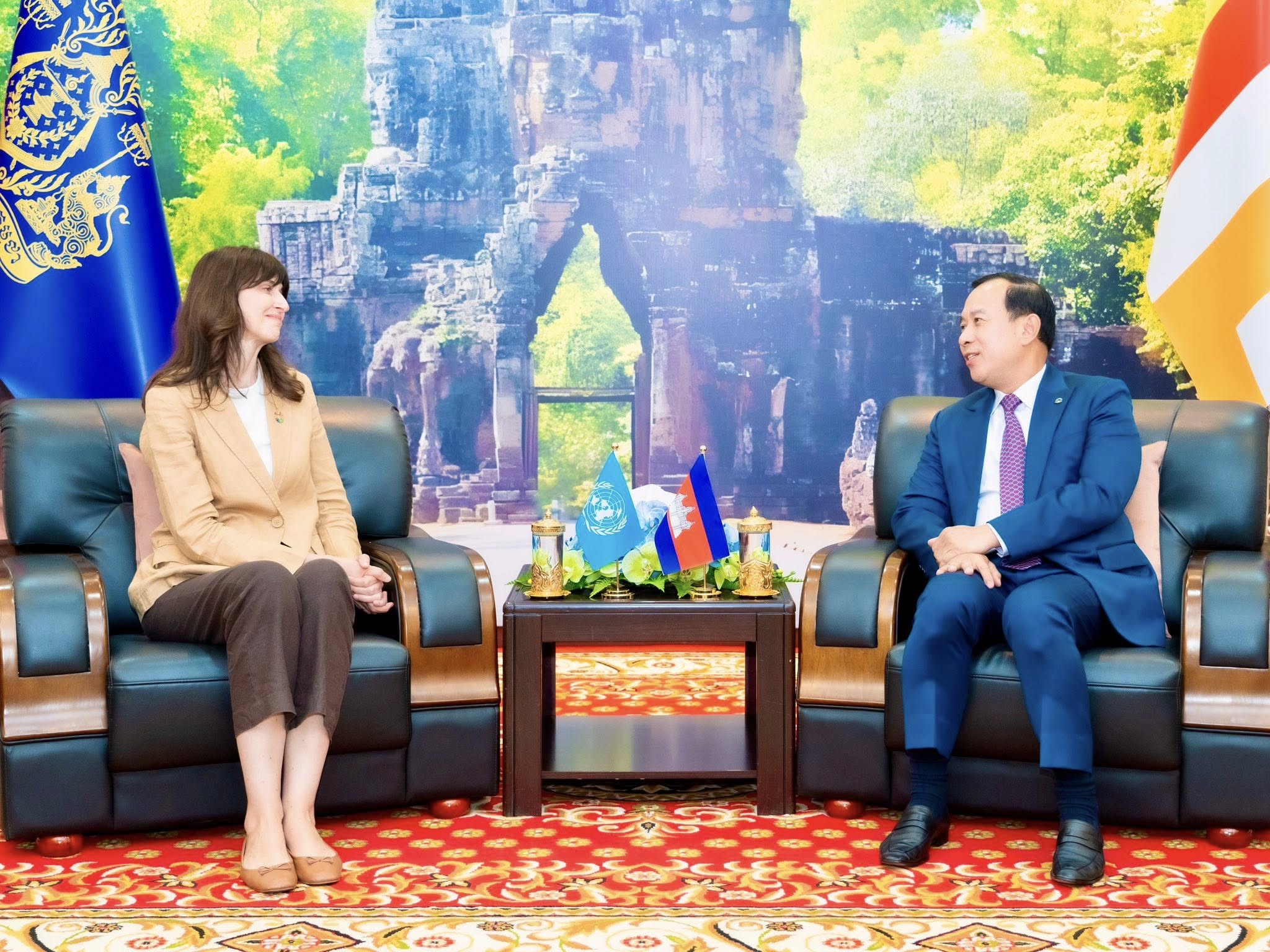 ក្នុងន័យនេះ លោករដ្ឋមន្ត្រី ក៏បានវាយតម្លៃខ្ពស់ចំពោះតួនាទី និងការចូលរួមយ៉ាងសកម្មរបស់អង្គការសហប្រជាជាតិ ក្នុងការគាំទ្រការអភិវឌ្ឍសេដ្ឋកិច្ច សង្គម និងមនុស្សធម៌កន្លងមក។ ក្រៅពីនេះ ភាគីទាំងពីរ ក៏បានឯកភាពគ្នាបន្តពង្រឹង និងពង្រីកកិច្ចសហប្រតិបត្តិការលើវិស័យអាទិភាពមួយចំនួនដូចជា៖ ការអភិវឌ្ឍទេសចរណ៍ផ្អែកលើសហគមន៍, ការកែលម្អប្រព័ន្ធទិន្នន័យទេសចរណ៍ និងការប្រើប្រាស់បច្ចេកវិទ្យាឌីជីថល ដើម្បីលើកកម្ពស់ប្រសិទ្ធភាពនៃការគ្រប់គ្រងវិស័យទេសចរណ៍ ព្រមទាំងពន្លឿនការសម្រេចបាននូវគោលដៅអភិវឌ្ឍន៍ ប្រកបដោយចីរភាពនៅកម្ពុជា។
