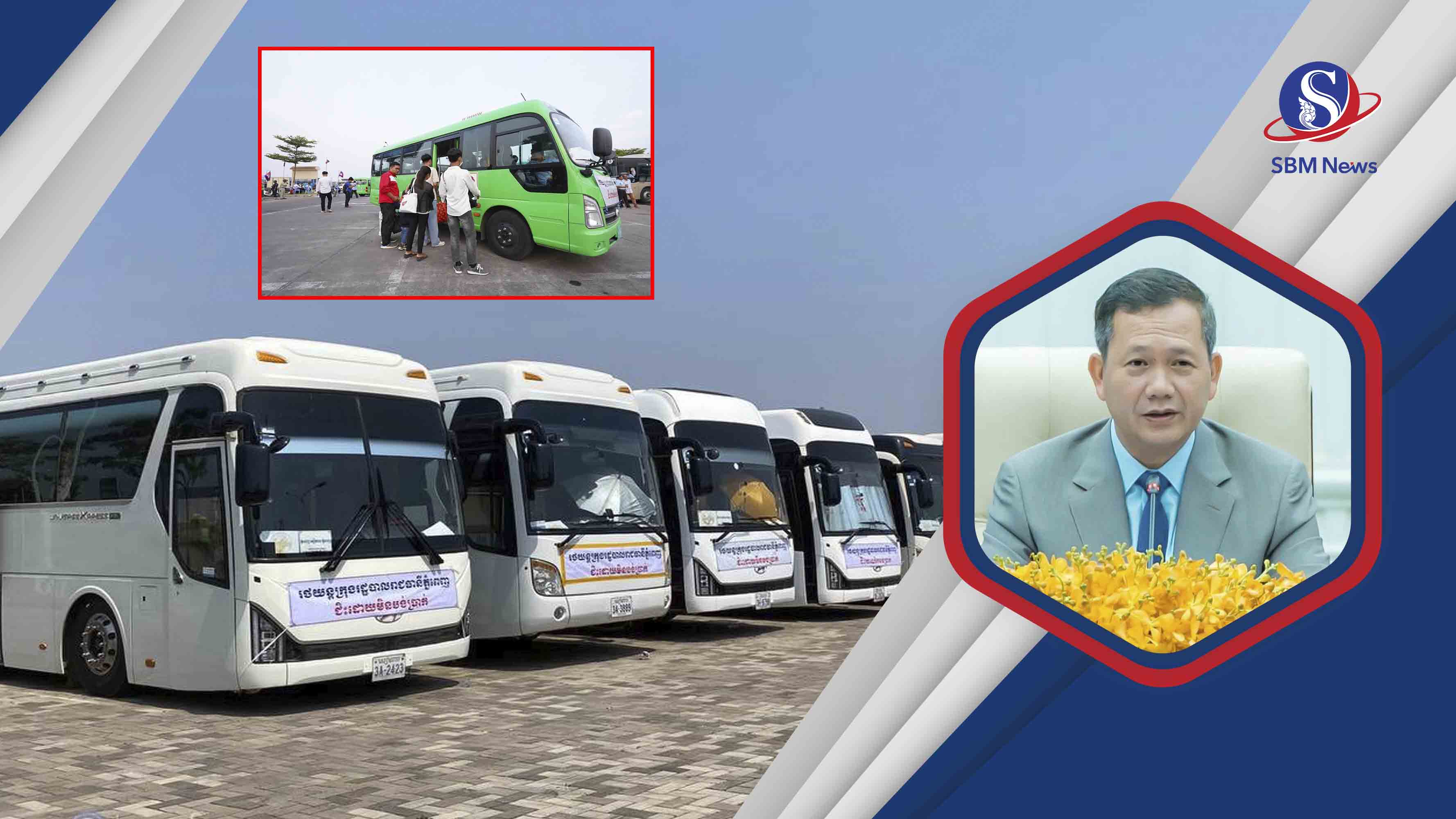 នៅលើទំព័រហ្វេសប៊ុកផ្ទាល់ខ្លួននៅព្រឹកថ្ងៃទី១២មេសានេះ សម្ដេចធិបតី ហ៊ុន ម៉ាណែត មានប្រសាសន៍ថា ដូចឆ្នាំមុនៗ ដើម្បីជួយសម្រាលបន្ទុកចំណាយរបស់បងប្អូនប្រជាពលរដ្ឋក្នុងការធ្វើដំណើរទៅលេងស្រុកកំណើត ក្នុងឱកាសអបអរសាទរពិធីបុណ្យចូលឆ្នាំថ្មី ប្រពៃណីជាតិខ្មែរ រាជរដ្ឋាភិបាល បានផ្តល់គោលការណ៍ជូនរដ្ឋបាលរាជធានីភ្នំពេញរៀបចំនូវរថយន្តក្រុង សម្រាប់ដឹកជញ្ជូនបងប្អូនប្រជាពលរដ្ឋធ្វើដំណើរទៅលេងស្រុកកំណើតដោយឥតគិតថ្លៃ។ ឆ្នាំនេះ រដ្ឋបានរៀបចំរថយន្តក្រុងចំនួន៦០០គ្រឿង សម្រាប់បម្រើសេវាដឹកជញ្ជូនពលរដ្ឋ ក្នុងឱកាសបុណ្យចូលឆ្នាំថ្មីប្រពៃណីជាតិខ្មែរ ចំនួន៦ថ្ងៃ គិតចាប់ពីថ្ងៃទី១២-១៧មេសា។