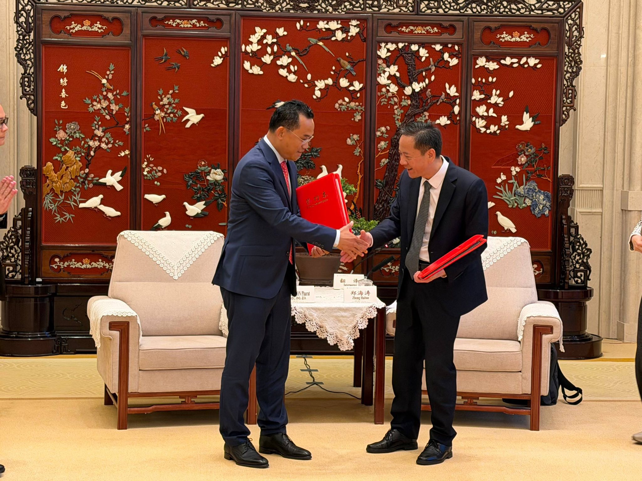ក្រុងយ៉ាងចូវ៖ លោក នួន ផារ័ត្ន អភិបាលនៃគណៈអភិបាលខេត្តកំពង់ធំ បានអញ្ជើញចុះហត្ថលេខារួមគ្នាជាមួយលោក ចេង ហៃតាវ Zheng Haitao អភិបាលទីក្រុងយ៉ាងចូវ នៃខេត្តជាំងស៊ូ សាធារណរដ្ឋប្រជាមានិតចិន លើ«លិខិតបញ្ជាក់សុច្ឆន្ទៈលើការផ្សារភ្ជាប់ទំនាក់ទំនងកិច្ចសហប្រតិបត្តិជាមួយគ្នា»...។