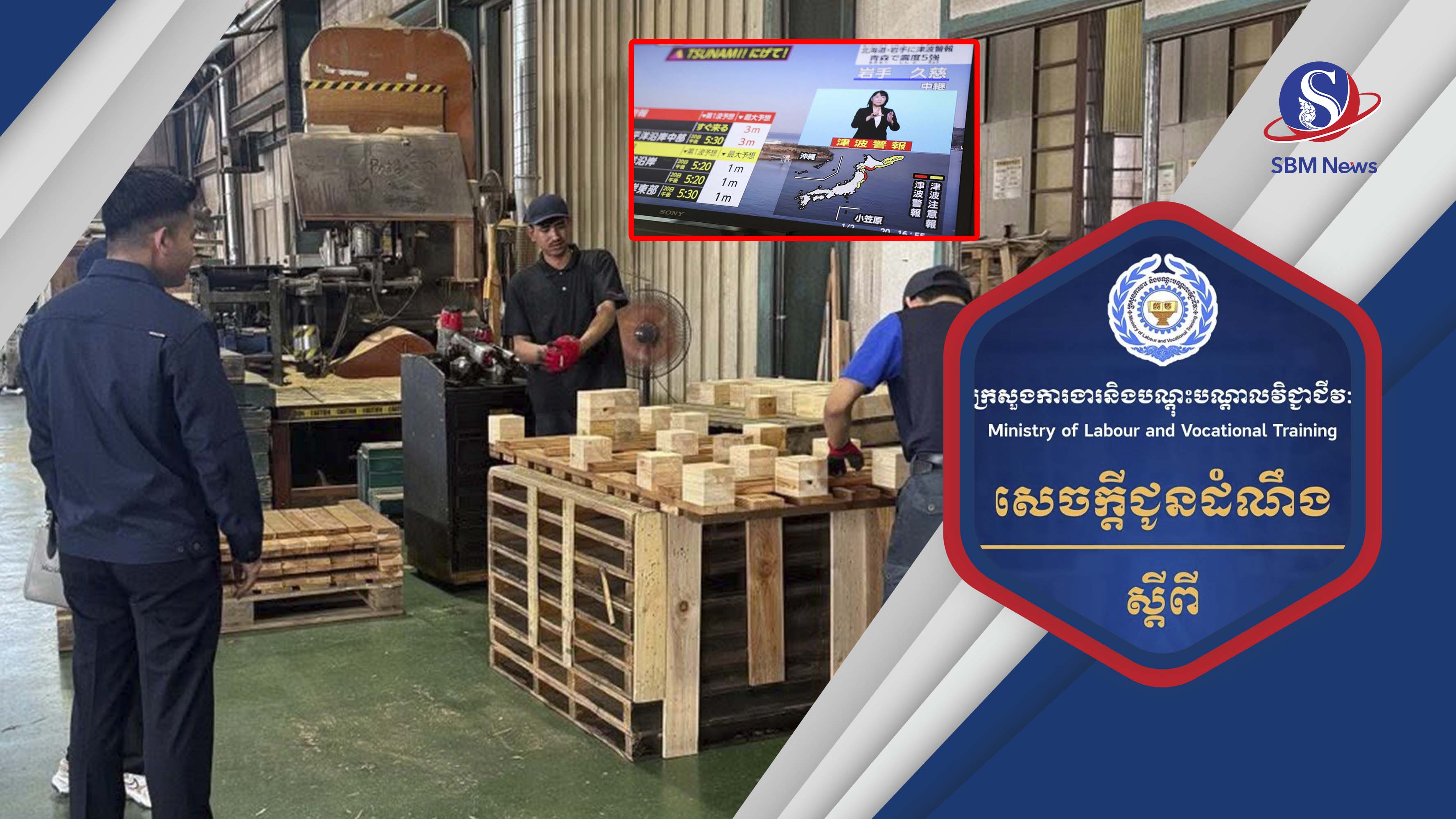 ក្រសួងការងារ បានចេញសេចក្តីជូនដំណឹងមួយបញ្ជាក់ថា នៅឆ្នេរសមុទ្ទសានរីគូ Sanriku នៃខេត្ត អាអូម៉ូរី Aomori, ហុកកៃដូ Hokkaido និងខេត្ត អ៊ីវ៉ាតេ Iwate របស់ប្រទេសជប៉ុន កាលពីវេលាម៉ោង៤:៥៣នាទីរសៀលថ្ងៃទី២០ ខែមេសា មានគ្រោះរញ្ជួយដីកម្រិត៧,៥រ៉ិចទ័រកើតឡើង។ ទន្ទឹមគ្នានោះ អាជ្ញាធរជប៉ុន ក៏បានប្រកាសអាសន្នអំពីលទ្ធភាពនៃការកើតឡើងនូវរលកយក្សស៊ូណាមិ កម្ពស់រហូតដល់៣ម៉ែត្រ នៅខេត្តទាំង៣ខាងលើ និងកម្ពស់ដល់១ម៉ែត្រនៅស្រុកមួយចំនួនក្នុងខេត្ត មីយ៉ាគី Miyagi, ហ្វូគូស៊ីម៉ា Fukushima, អ៊ីបារ៉ាគី Ibaraki និងខេត្តជីបា Chiba ផងដែរ។ ចំពោះមុខបញ្ហានេះ ក្រសួងការងារកម្ពុជា៖«អំពាវនាវដល់បងប្អូនកម្មសិក្សាការី-ពលករជំនាញ ដែលកំពុងស្នាក់នៅ និងធ្វើការនៅប្រទេសជប៉ុន ជាពិសេសក្នុងខេត្តដែលរងផលប៉ះពាល់ សូមបង្កើនការប្រុងប្រយ័ត្នខ្ពស់ និងបន្តយកចិត្តទុកដាក់តាមដានស្ថានការណ៍ ព្រមទាំងអនុវត្តតាមការណែនាំរបស់អាជ្ញាធរជប៉ុន»។