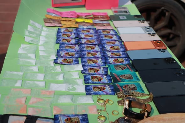 ជាមួយគ្នានេះ មន្ត្រីកងរាជអាវុធហត្ថបានដកហូតវត្ថុតាងគ្រឿងញៀនប្រភេទម្សៅក្រាមពណ៌ស(កេតាមីន)ចំនួន៣៤ថង់កិប, កញ្ចប់ម្សៅ PORSCHE រូបសេះពណ៌ស្វាយ និងពណ៌បៃតង (អ៊ិចស្តាស៊ី) ចំនួន២៥កញ្ចប់, ម្សៅម៉ត់ពណ៌ទឹកក្រូច (អ៊ិចស្តាស៊ី) ចំនួន១៤ថង់កិប, ជញ្ជីងសម្រាប់ថ្លឹងគ្រឿងញៀន, រថយន្ត និងម៉ូតូចំនួន២គ្រឿងផងដែរ។ បច្ចុប្បន្ន ជនសង្ស័យត្រូវបានកម្លាំងការិយាល័យប្រឆាំងគ្រឿងញៀននៃកងរាជអាវុធហត្ថ បញ្ជូនទៅសាលាដំបូងខេត្តបន្ទាយមានជ័យ ដើម្បីចាត់ការតាមនីតិវិធីច្បាប់៕