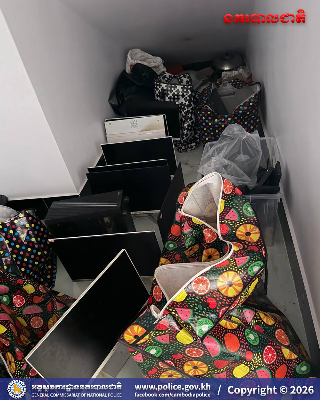 ទោះជាយ៉ាងណាក៏ដោយ ក្រៅពីការចាប់ខ្លួនជនល្មើសទាំងនោះ អាជ្ញាធរបានបន្តដកហូតសម្ភារពាក់ព័ន្ធនឹងបទល្មើសរួមមាន៖ កុំព្យូទ័រ All-In-One, កុំព្យូទ័រយួរដៃ, ទូរសព្ទដៃ, រថយន្ត, ម៉ូតូ និងសម្ភារមួយចំនួនទៀត។ បច្ចុប្បន្ន ជនសង្ស័យរួមទាំងវត្ថុតាង ត្រូវបានសមត្ថកិច្ចជំនាញ កំពុងកសាងសំណុំរឿងបញ្ជូនទៅសាលាដំបូងខេត្ត ដើម្បីចាត់ការតាមនីតិវិធីច្បាប់៕