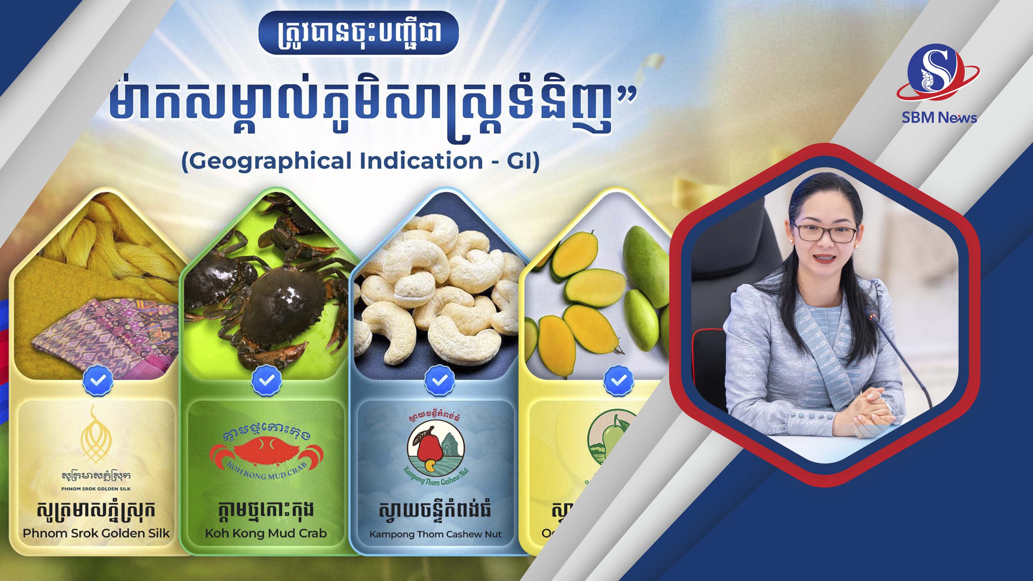 រាជធានីភ្នំពេញ៖ សូត្រមាសភ្នំស្រុក, ក្តាមថ្មកោះកុង, ស្វាយចន្ទីកំពង់ធំ និងស្វាយឧត្តរមានជ័យ ត្រូវបានក្រសួងពាណិជ្ជកម្ម សម្រេចចុះក្នុងបញ្ជី «ម៉ាកសម្គាល់ភូមិសាស្ត្រទំនិញ»។ នេះបើតាមព័ត៌មាន ដែលបង្ហោះលើទំព័រហ្វេសប៊ុករបស់លោកស្រី ចម និម្មល រដ្ឋមន្រ្តីក្រសួងពាណិជ្ជកម្ម នៅព្រឹកថ្ងៃទី២៧ ខែមេសា ឆ្នាំ២០២៦។